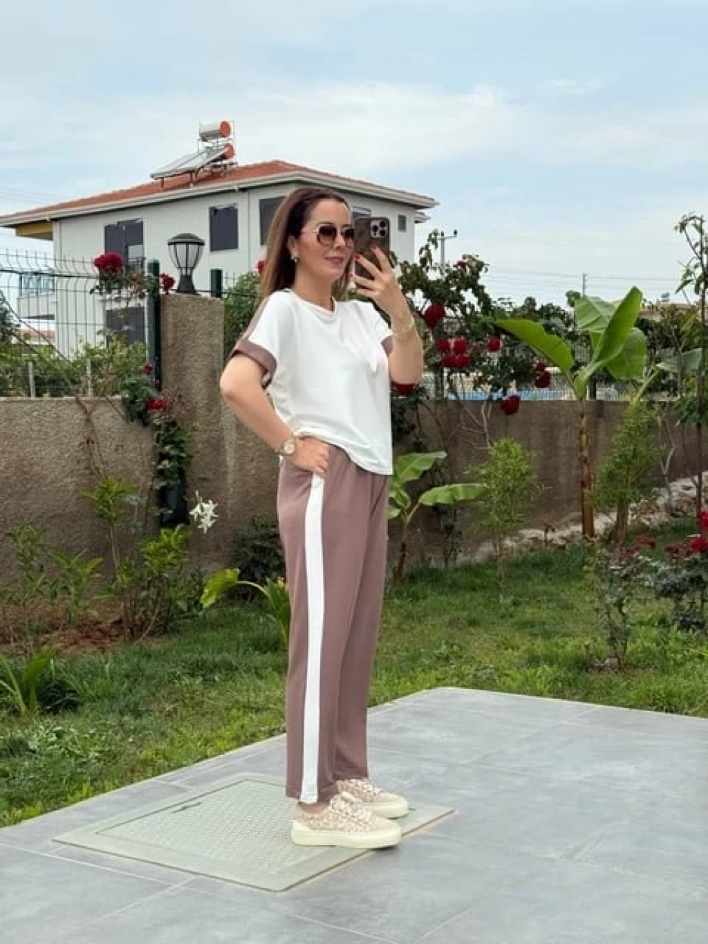 Kadın Modal Dokulu Kumaş Yanı şeritli Takım