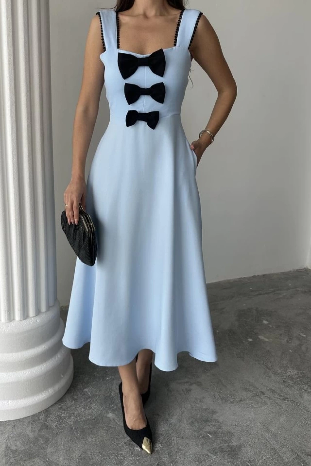 Bebe Mavi Fiyonk Garnili Dantelli Elbise