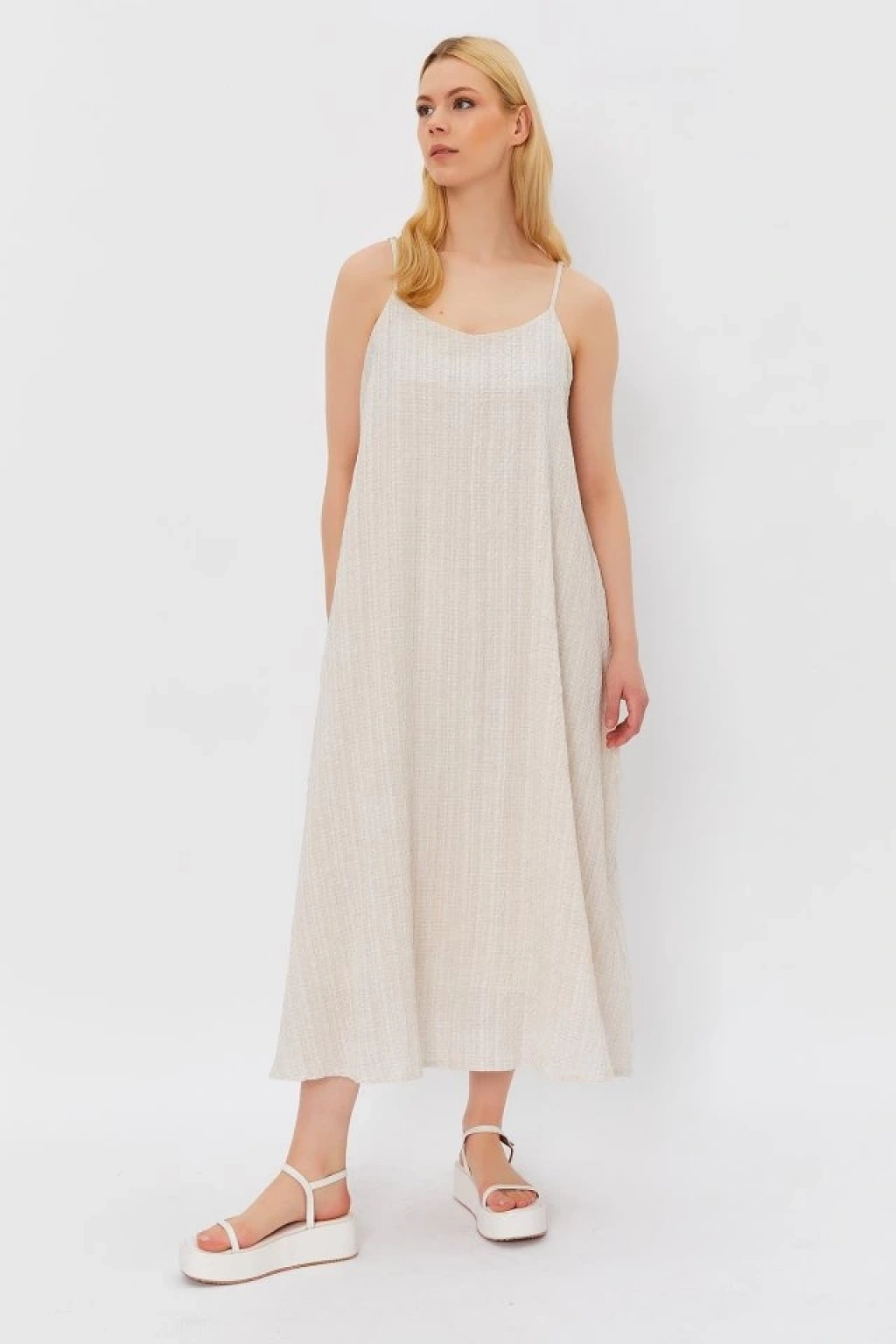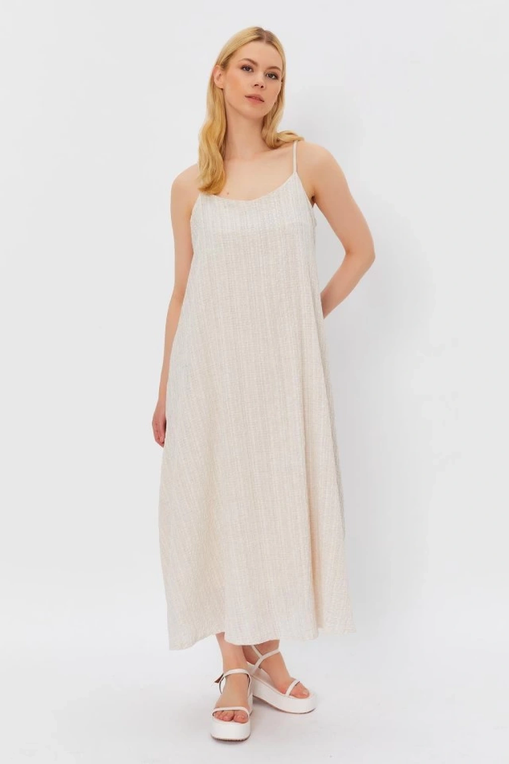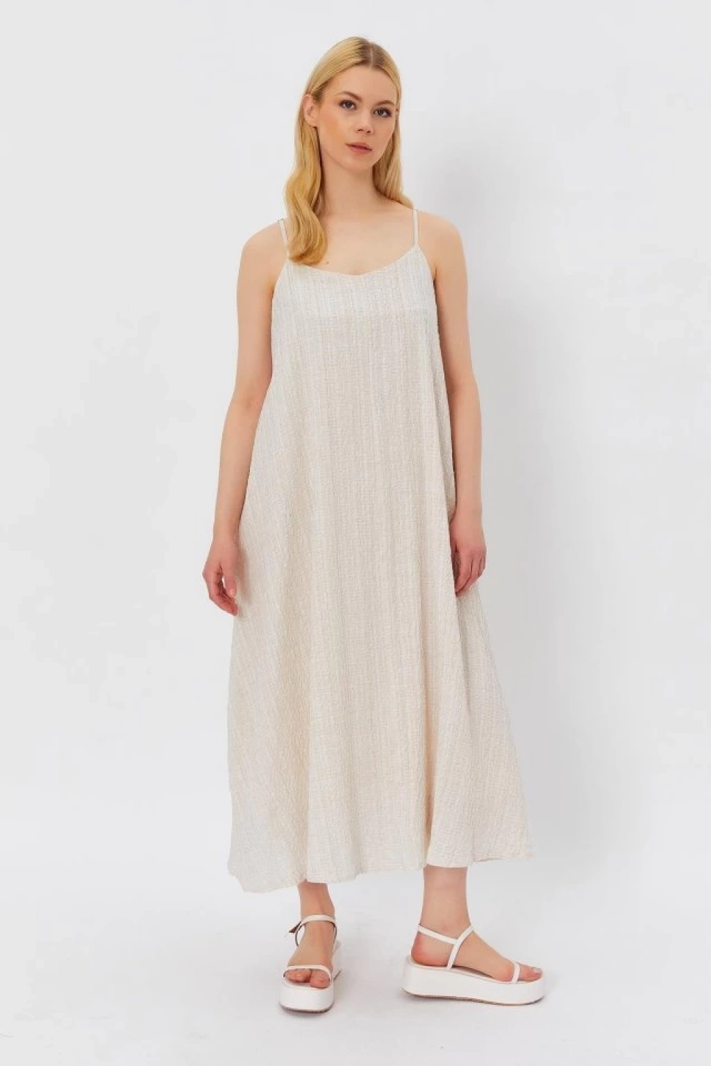 Askılı Uzun Çan Elbise - Natür