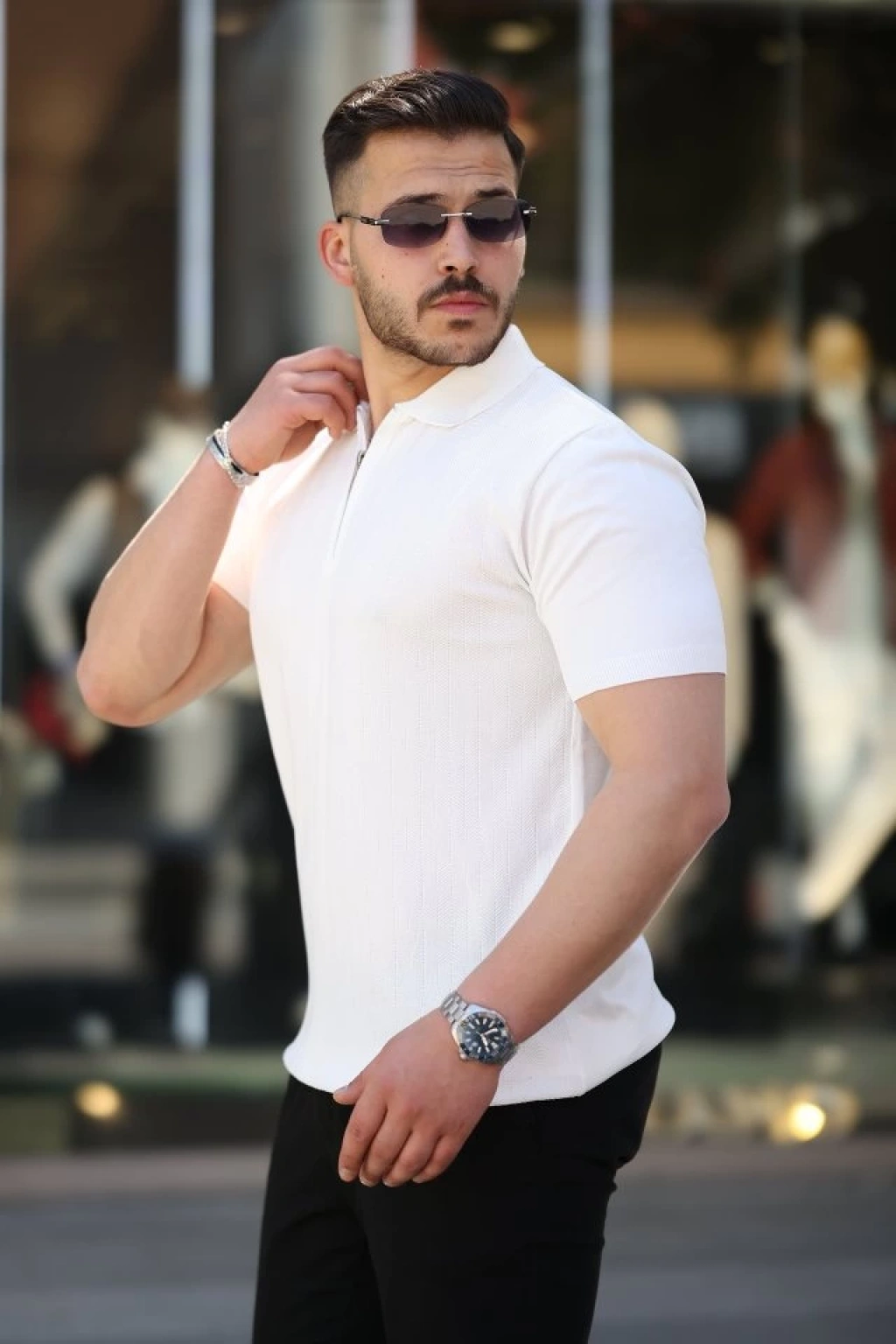 Erkek Yakası Fermuarlı Kısa Kollu T-shirt