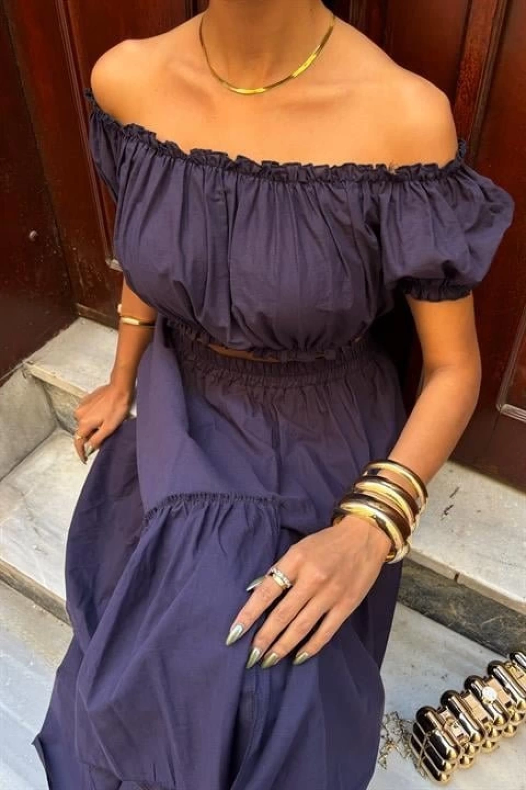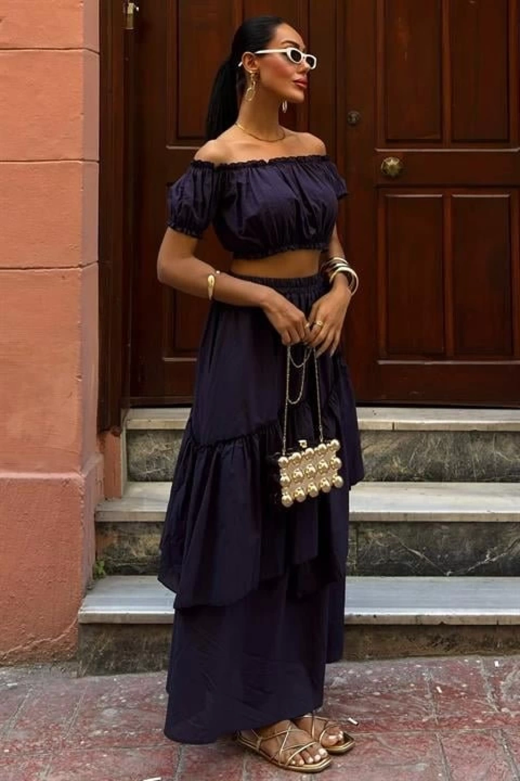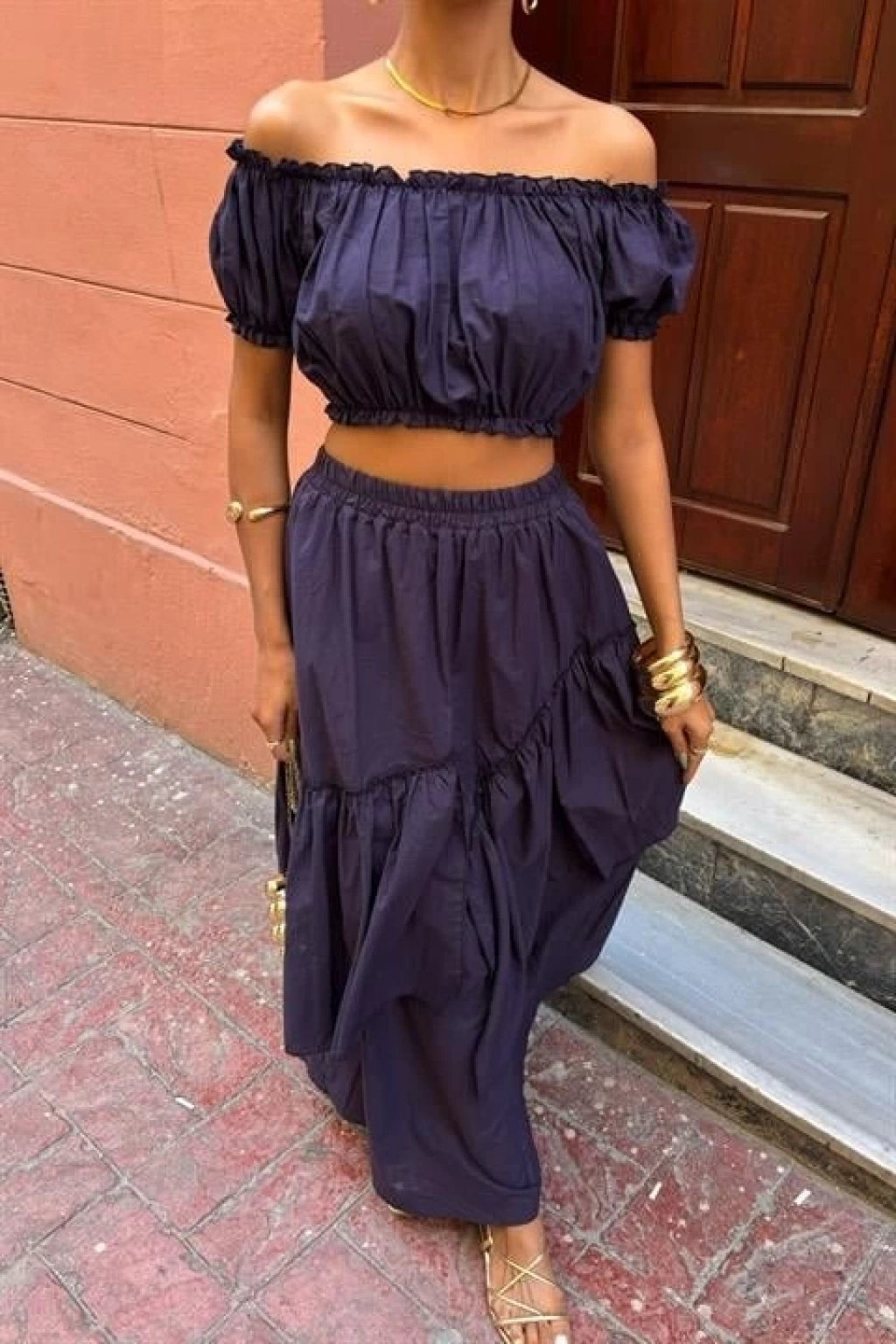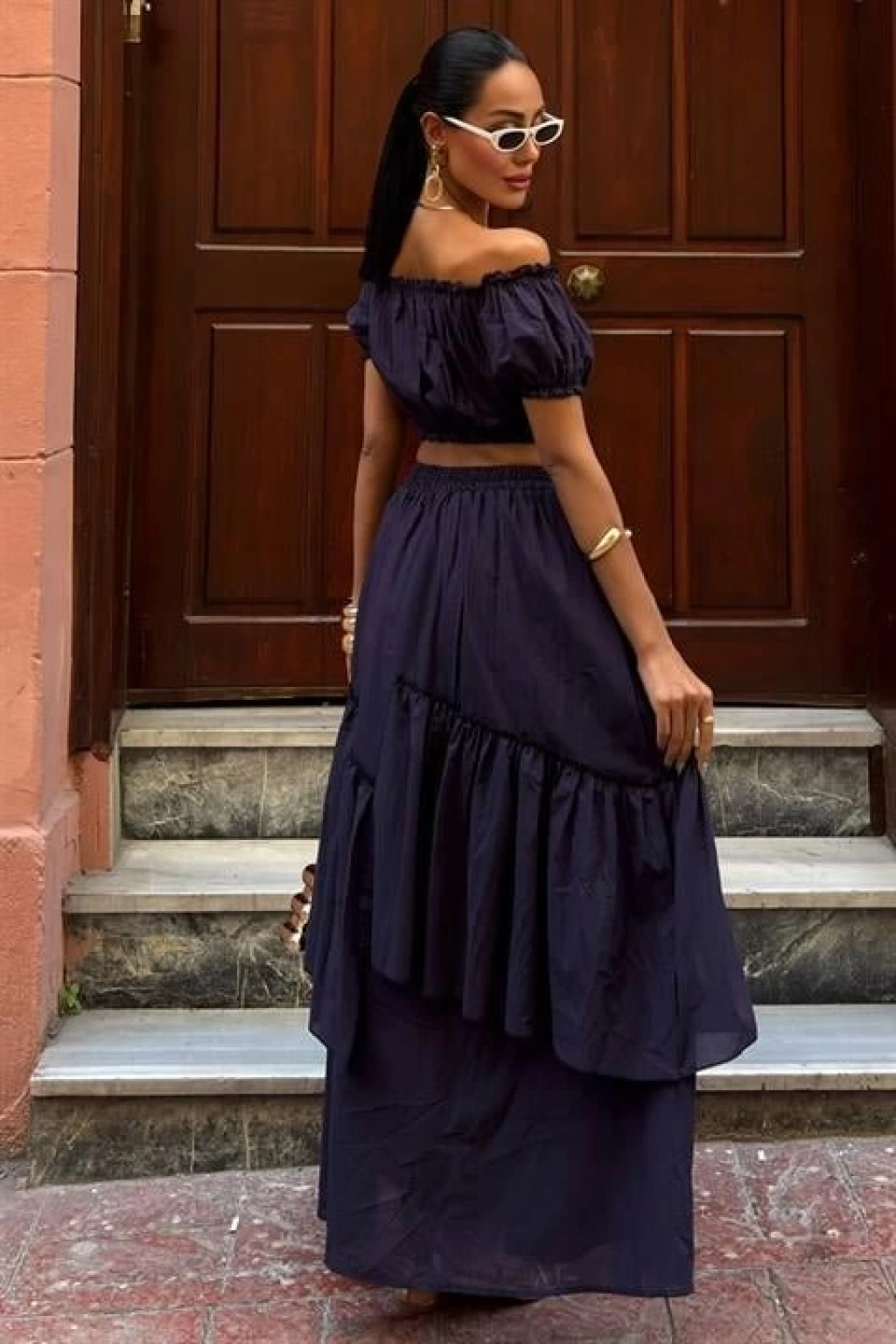 Büzgülü Crop Kat Detaylı Fırfır Etekli Takım 10196