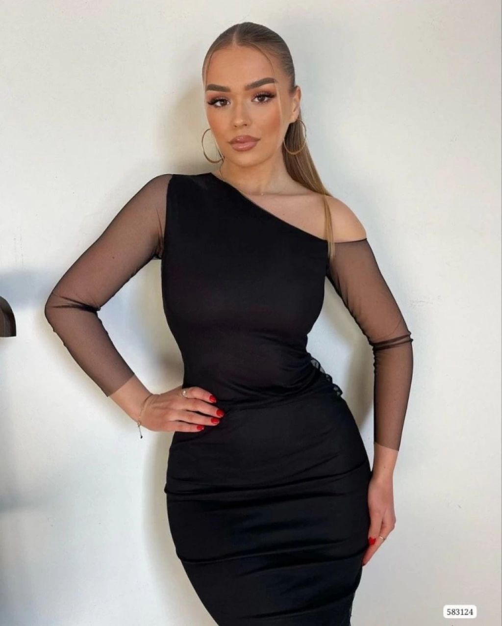 Kadın Tül Astarlı Tek Omuz Detaylı Elbise