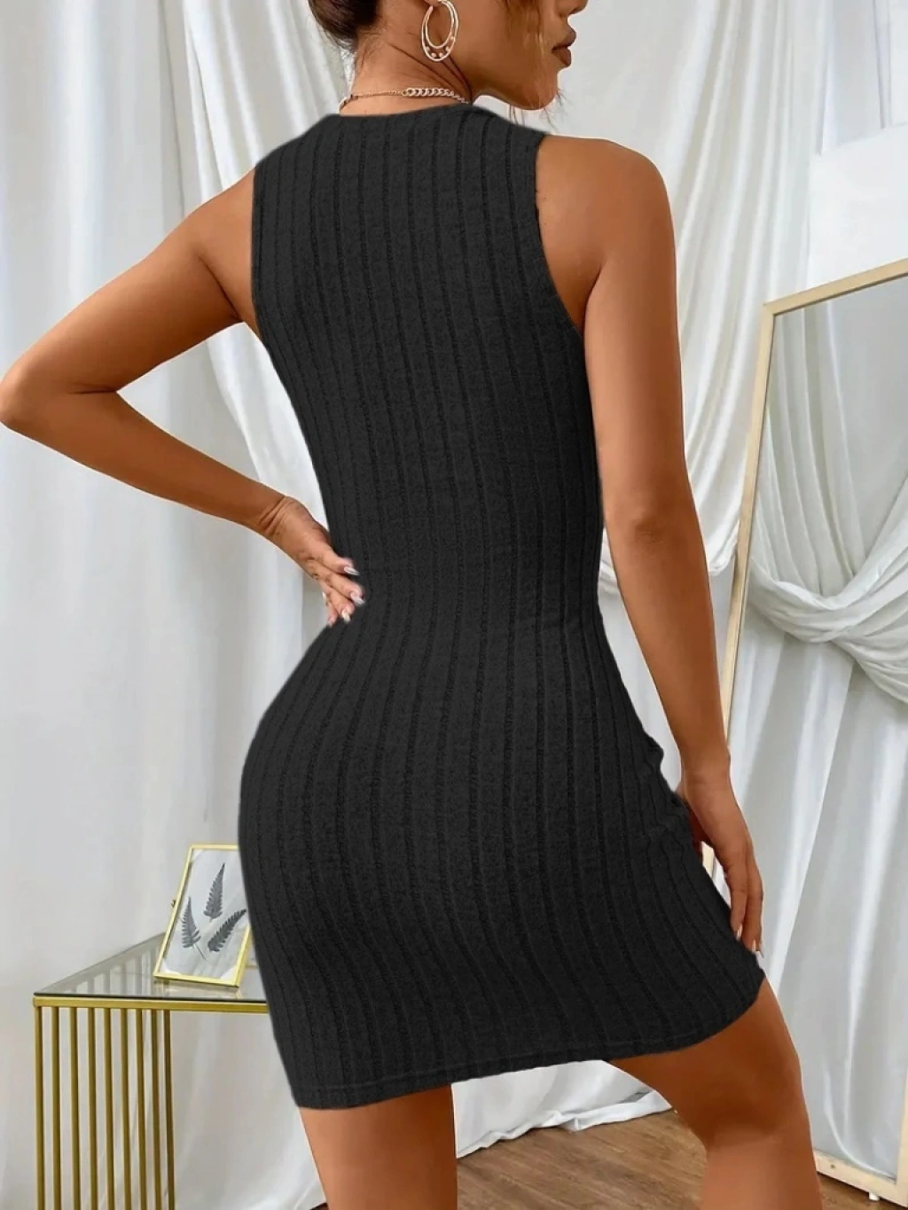 Kadın Kolsuz Bisiklet Yaka Kalın Fitilli Kaşkorse Mini Elbise