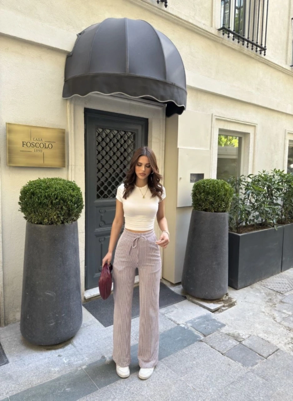 Su Yolu Çizgili Kolay Kombinle Ne Bilir Cepli Pantolon - Bordo