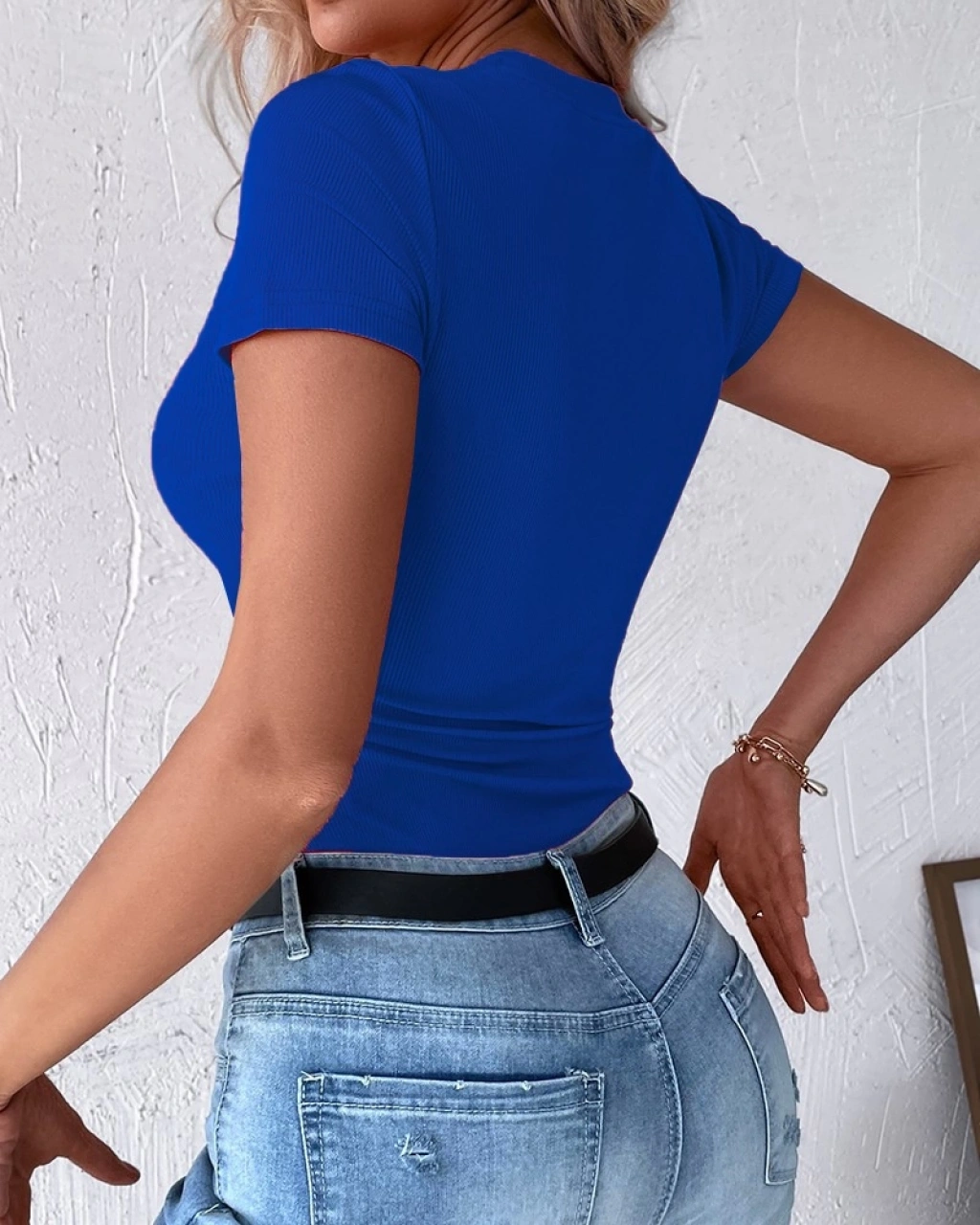 Kadın Kısa Kollu Yuvarlak Yakalı Düğme Detay Kaşkorse Bluz
