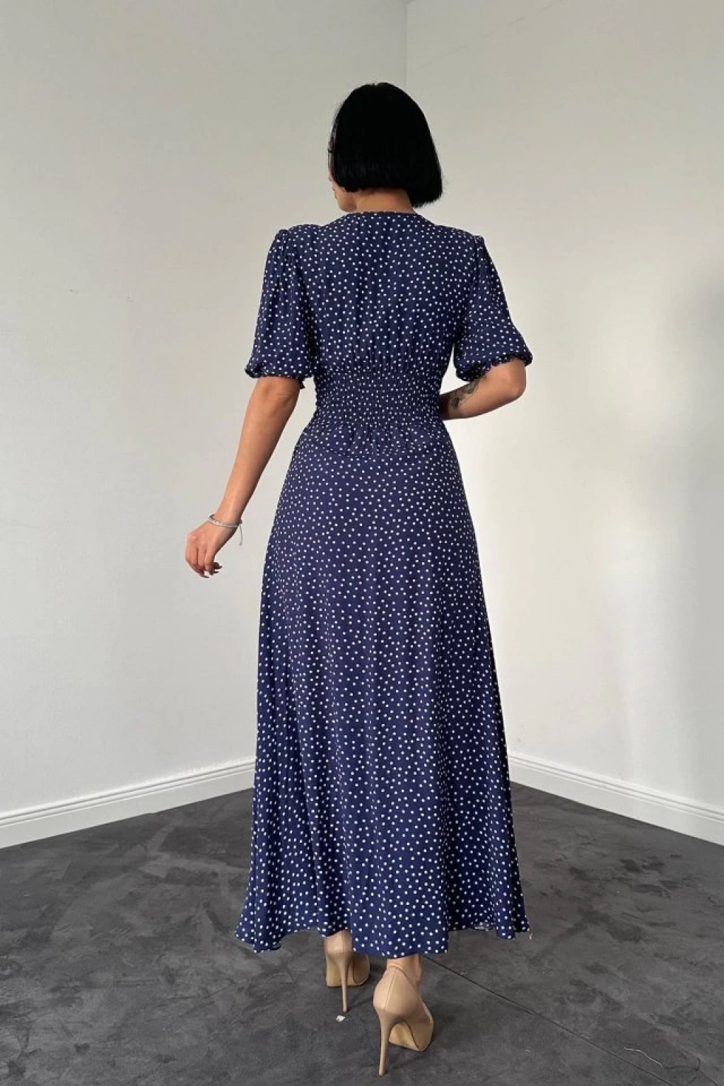 Lacivert Arka Ve Bel Ucu Gipeli Elbise