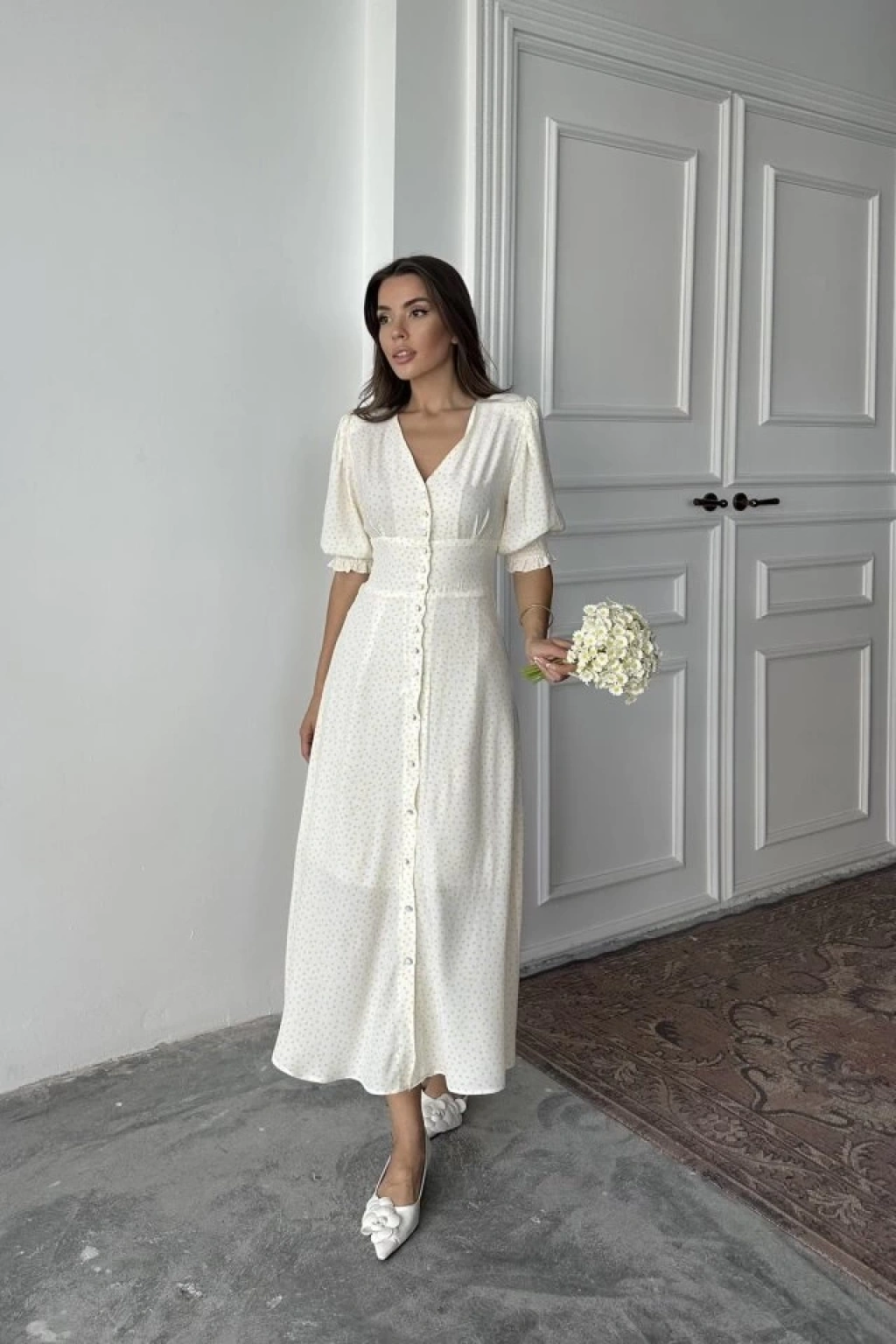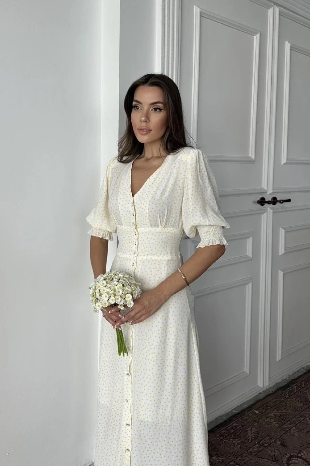 Sarı Arka Ve Bel Ucu Gipeli Elbise