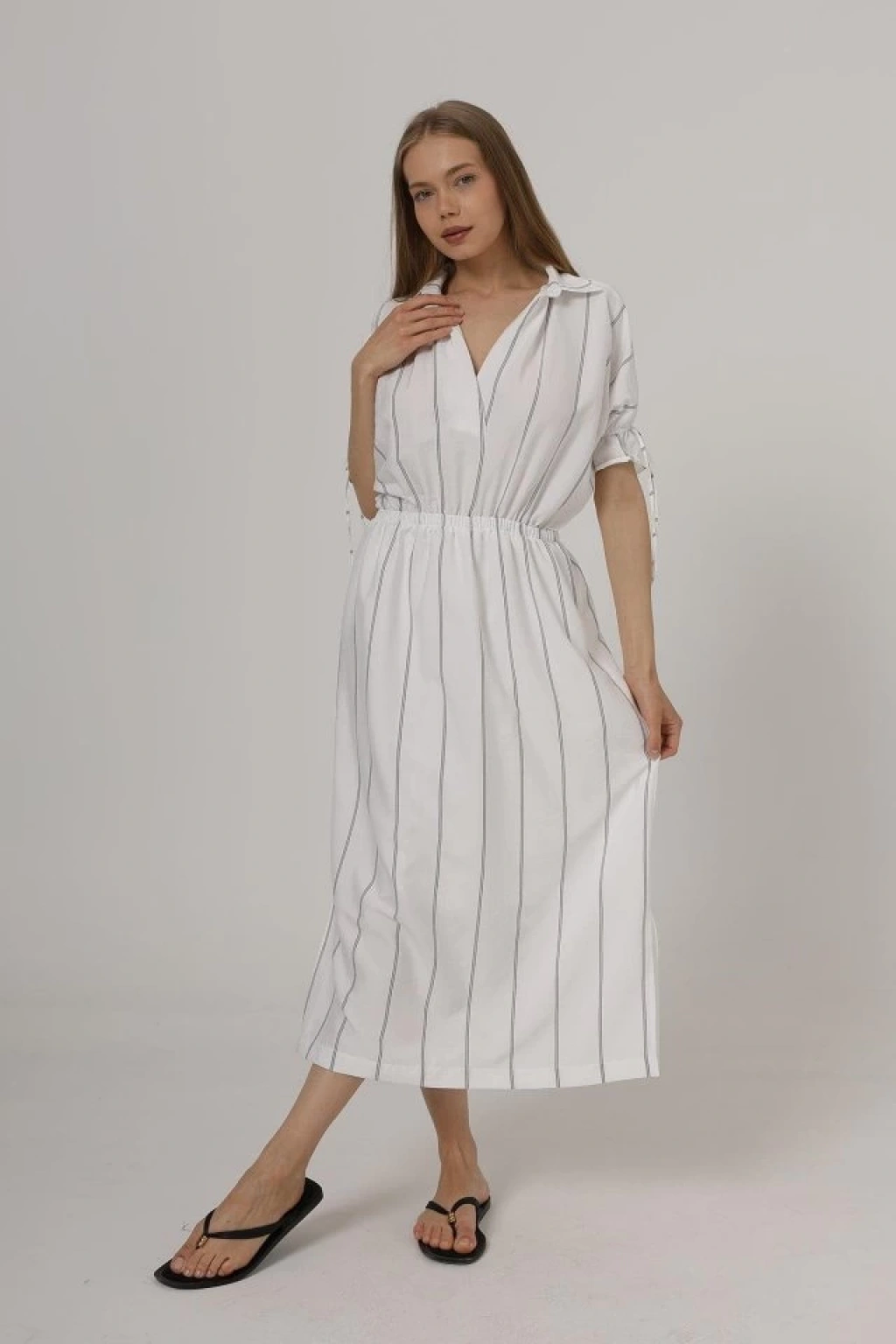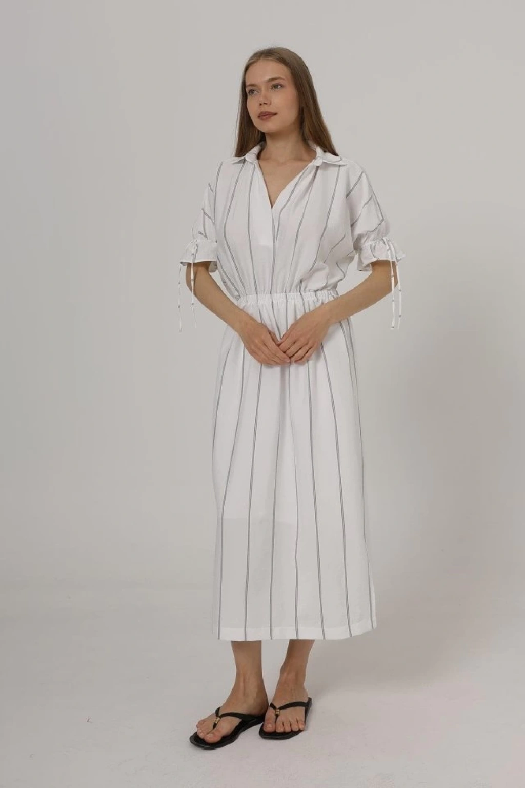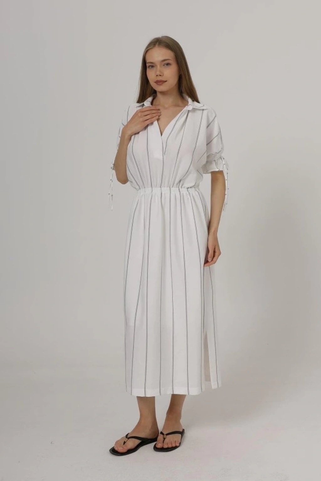 Beli Lastikli Elbise - Beyaz