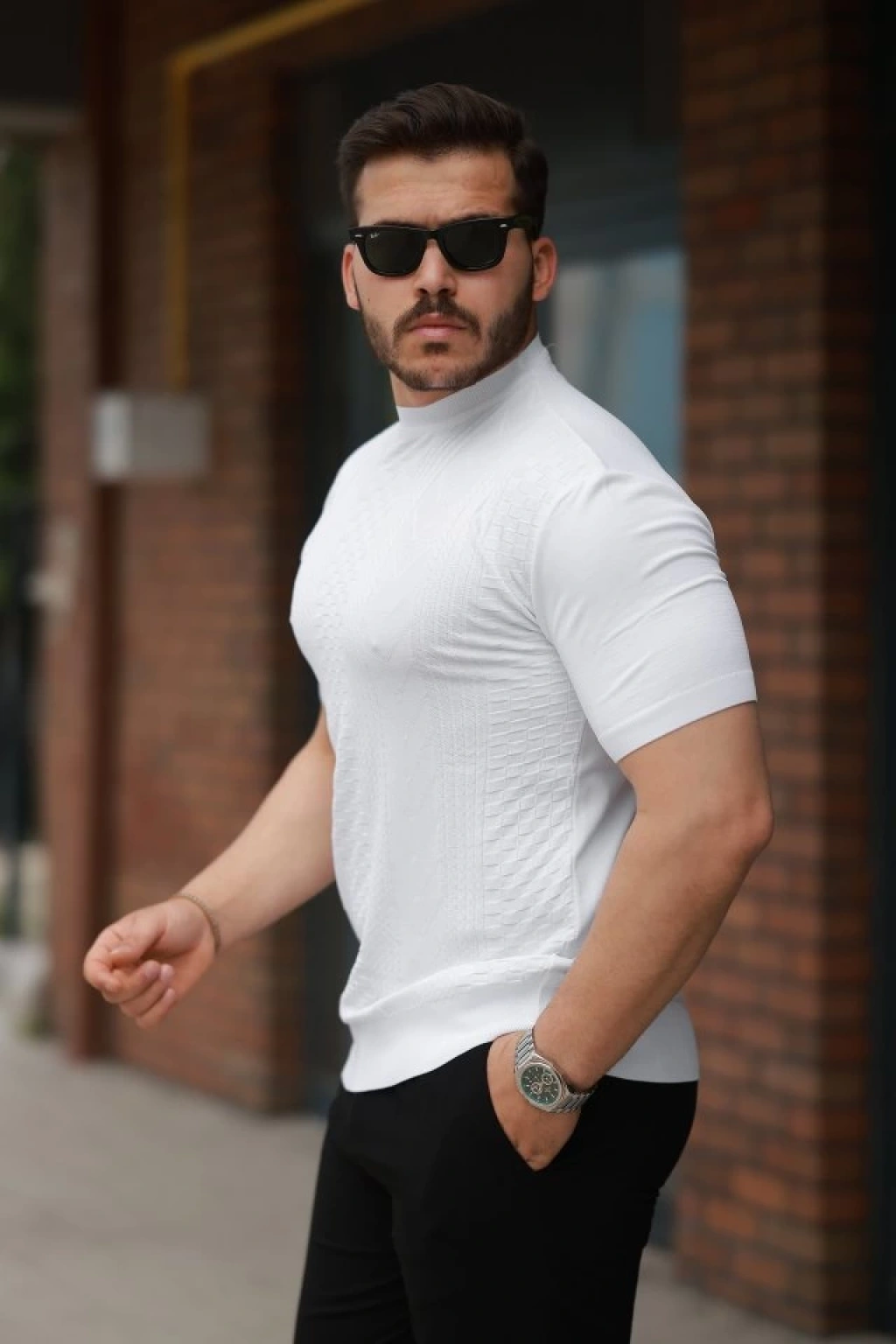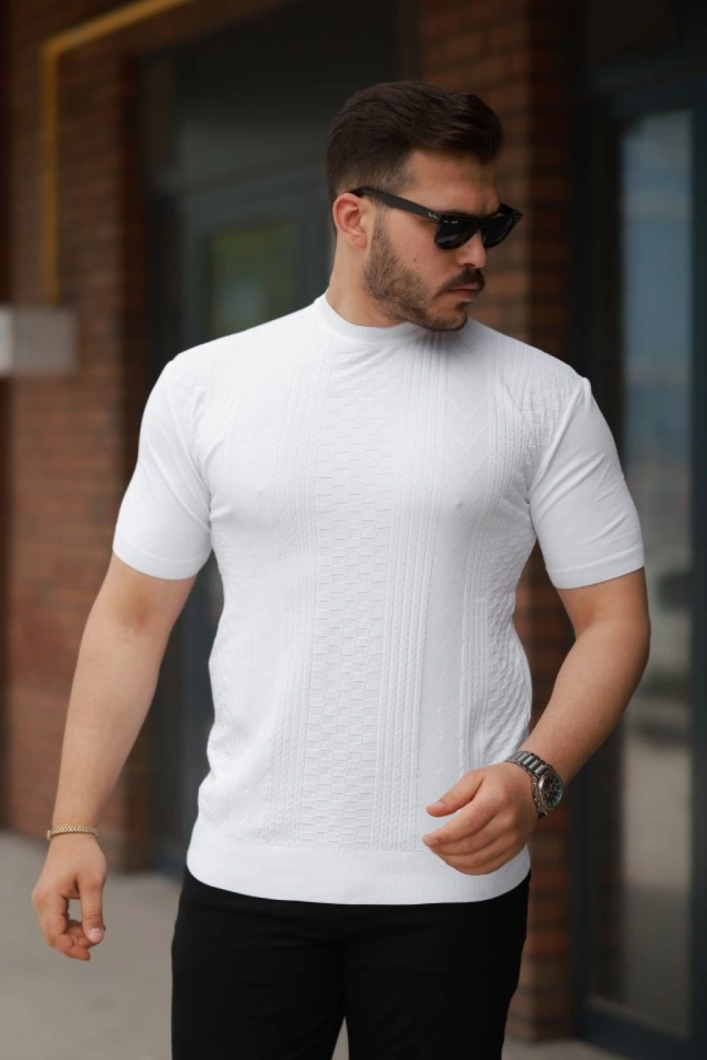 Erkek Desen Dokulu Kısa Kollu Tişört
