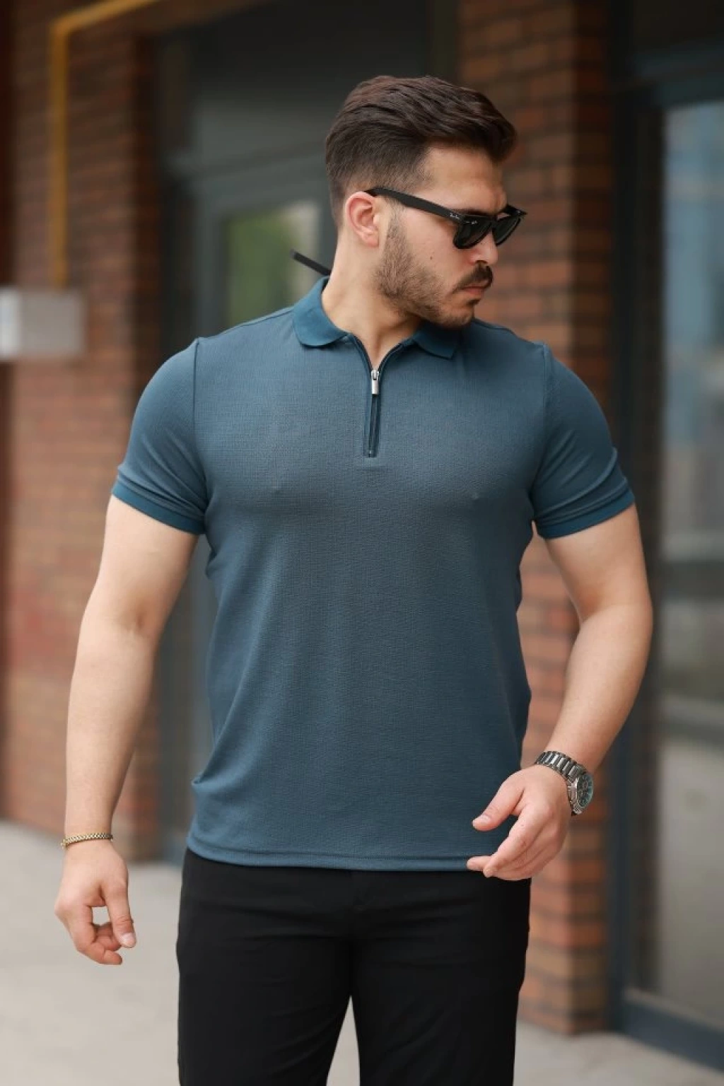 Erkek Fermuarlı Yaka Kısa Kollu Tişört