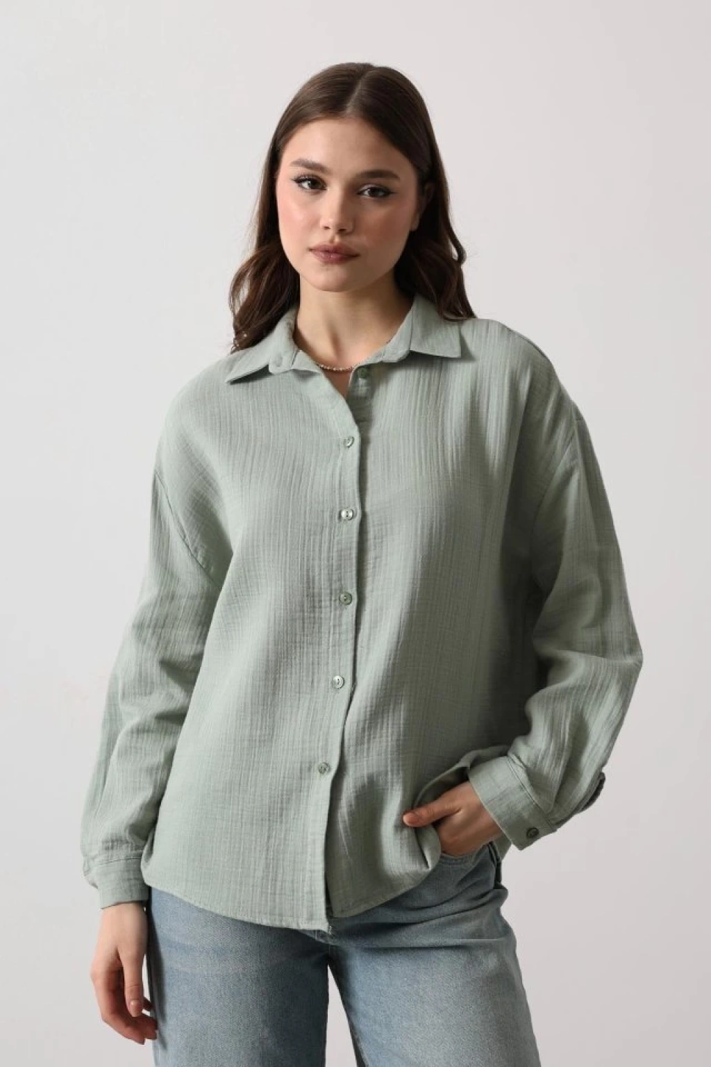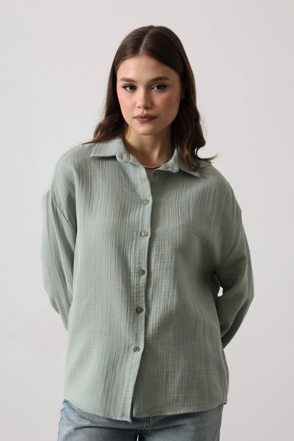 Müslin Uzun Kol Gömlek - Haki