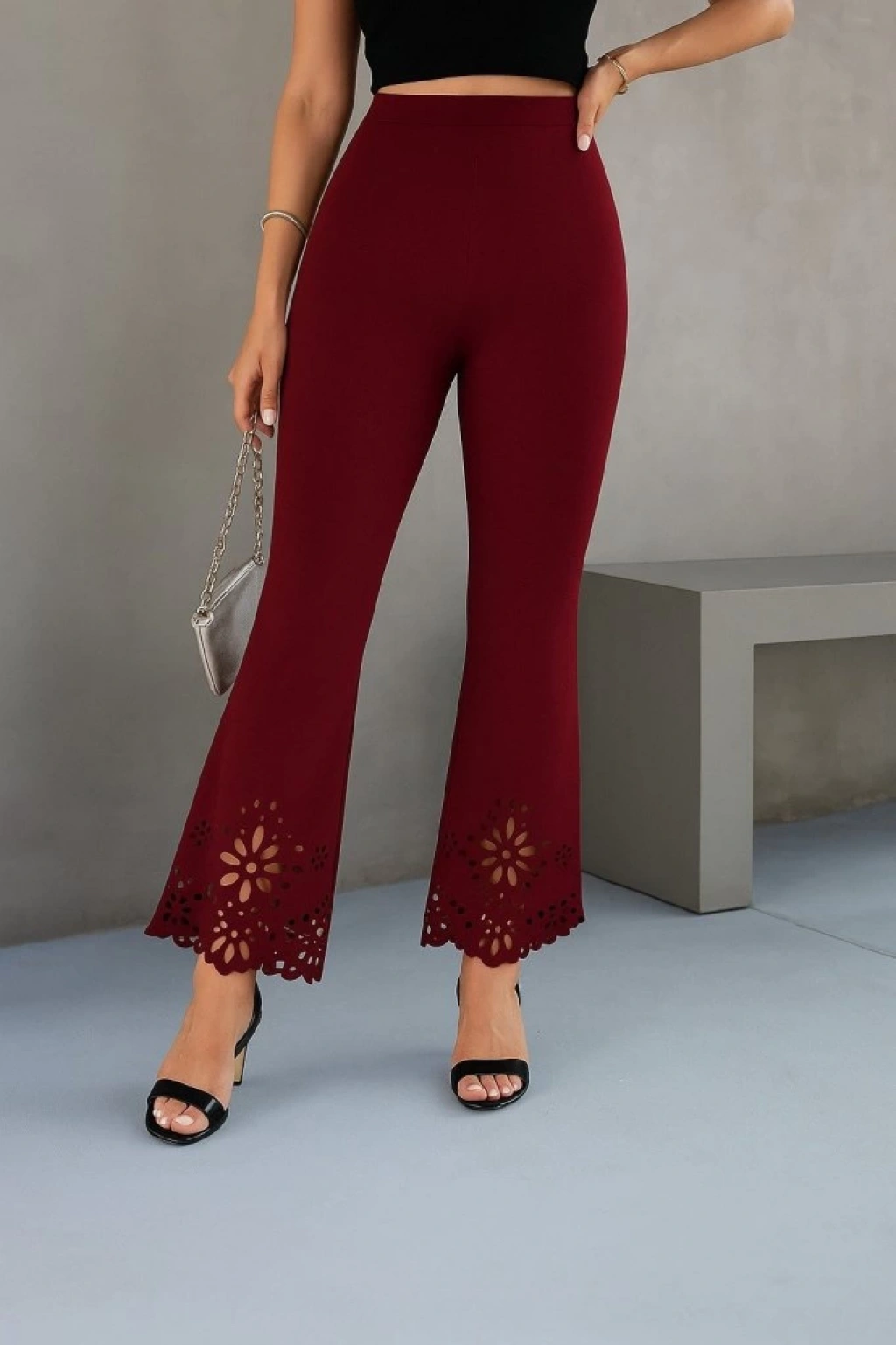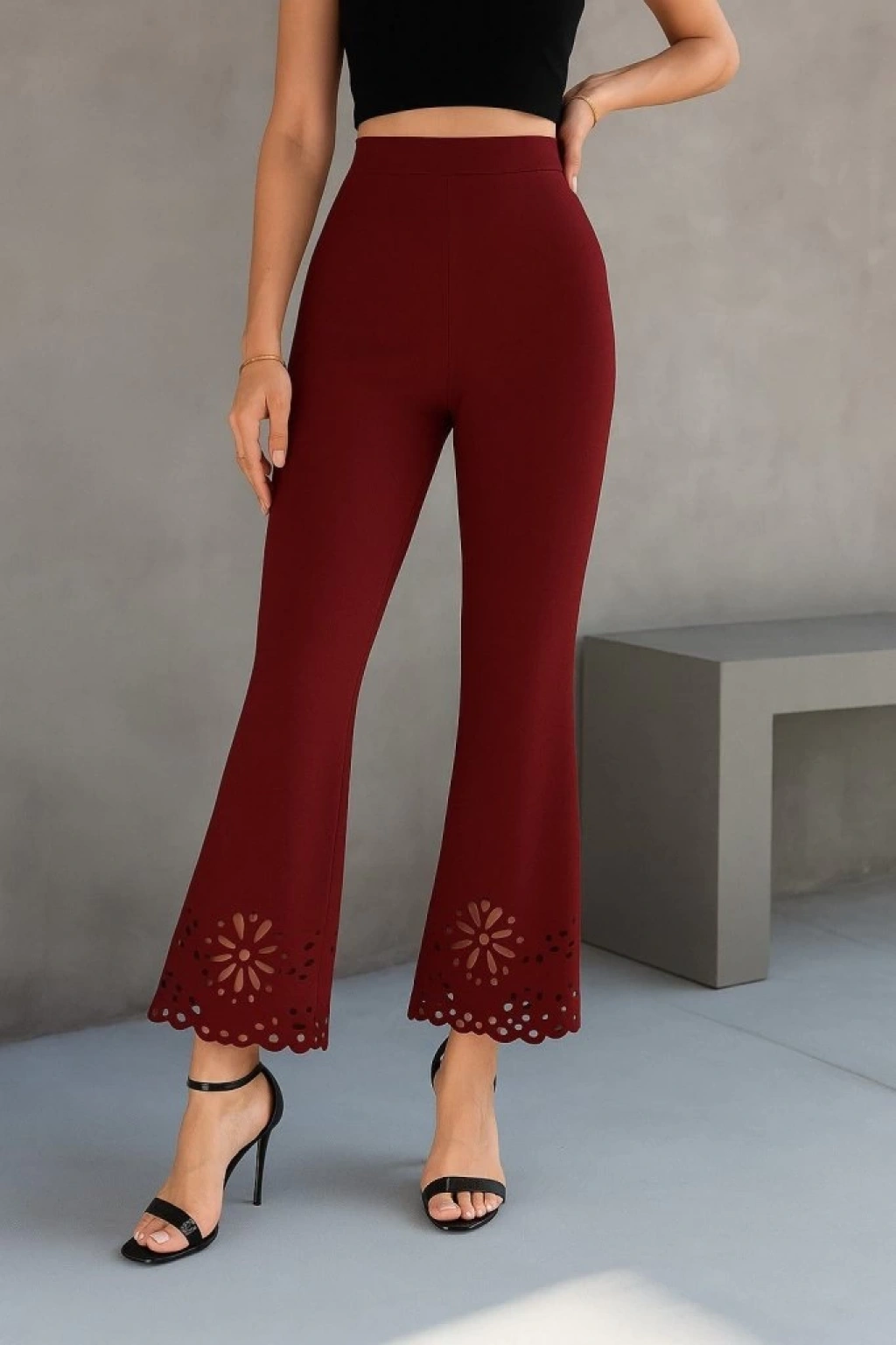 Kadın Yüksek Bel Paçaya Doğru Genişleyen Lazer çiçek Kesim Detaylı Ithal Krep Pantolon