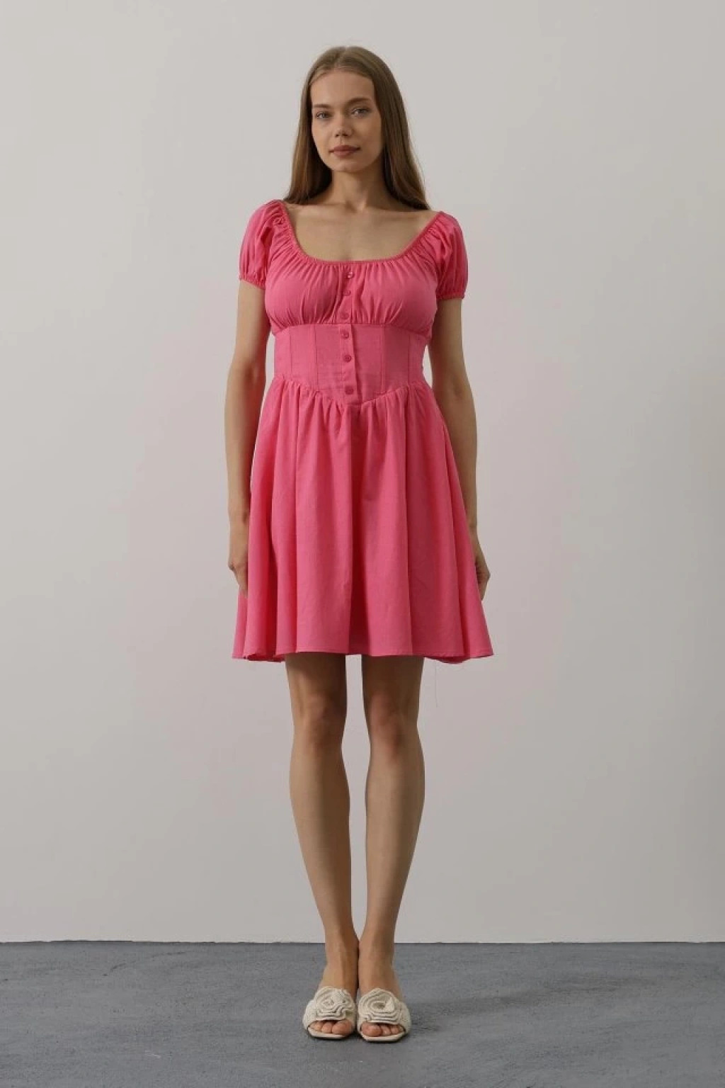 Beli Korseli Mini Elbise - Fuşya