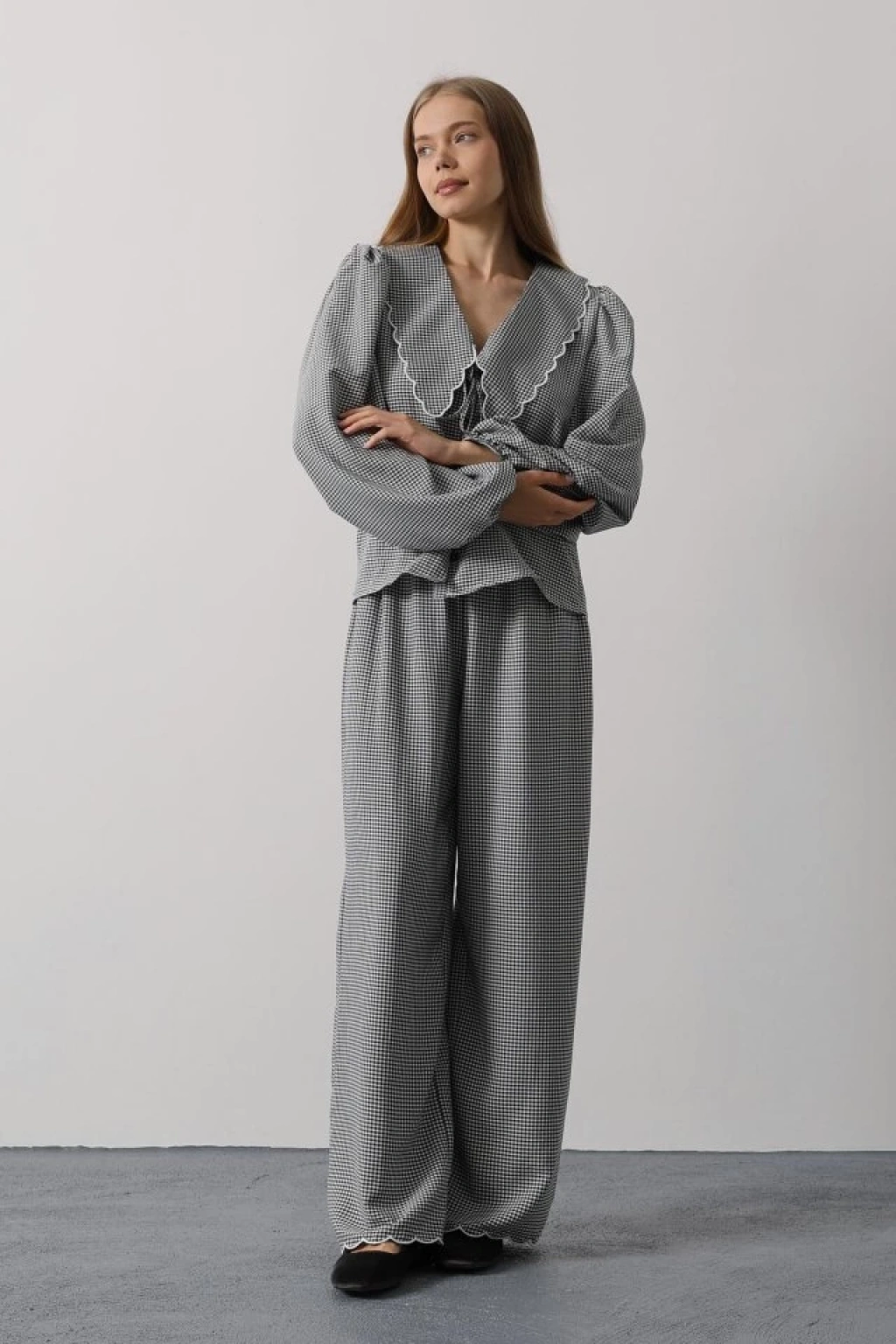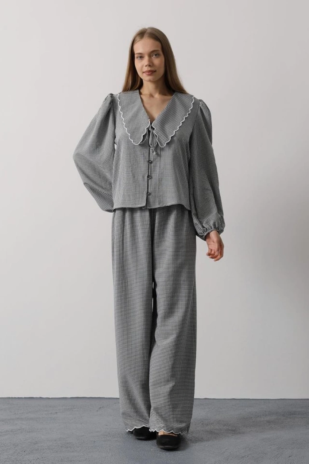 İşlemeli Bebe Yakalı Pantolon Takım - Siyah