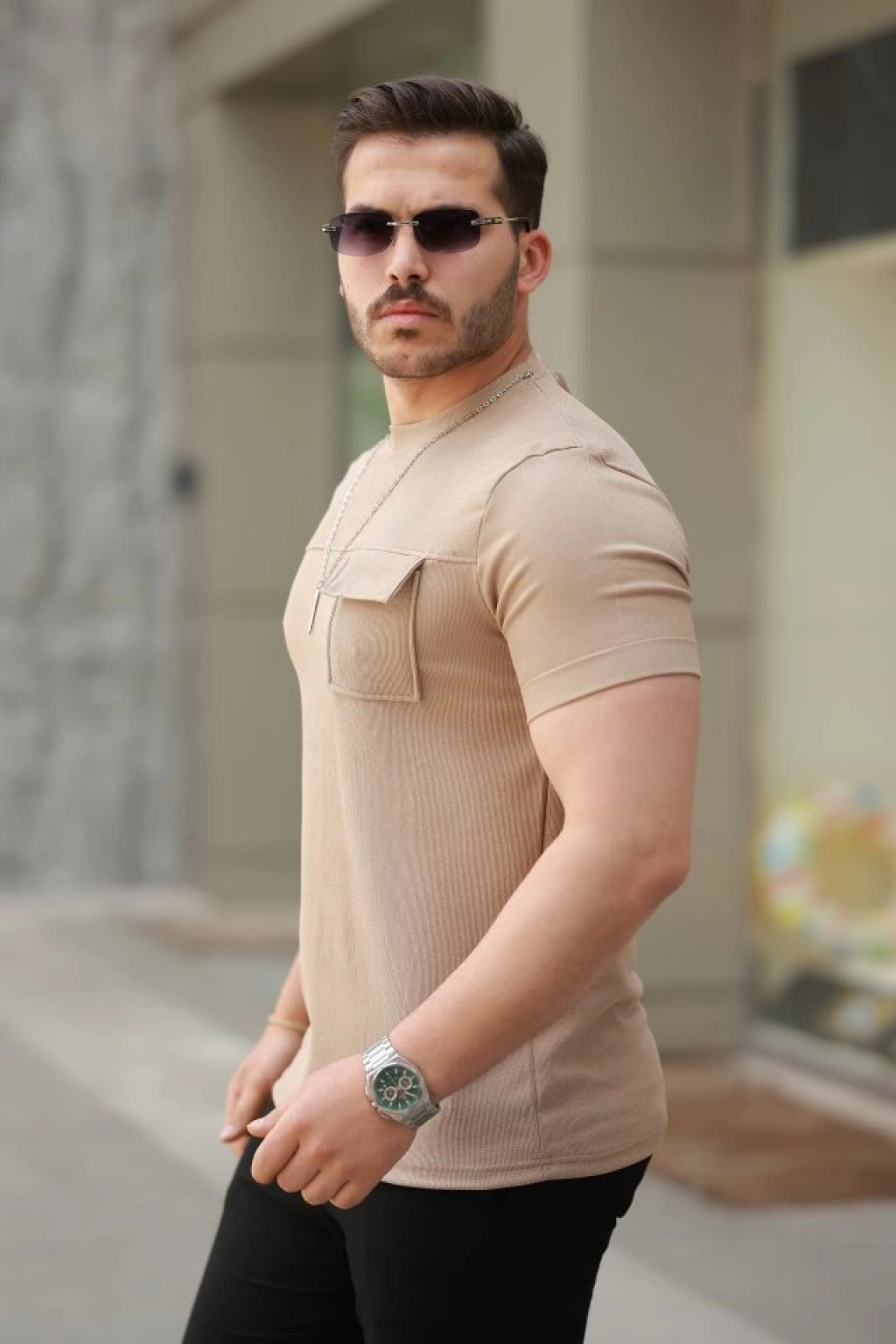 Erkek Cepli Kolyeli Kısa Kollu örme Kumaş Tişört