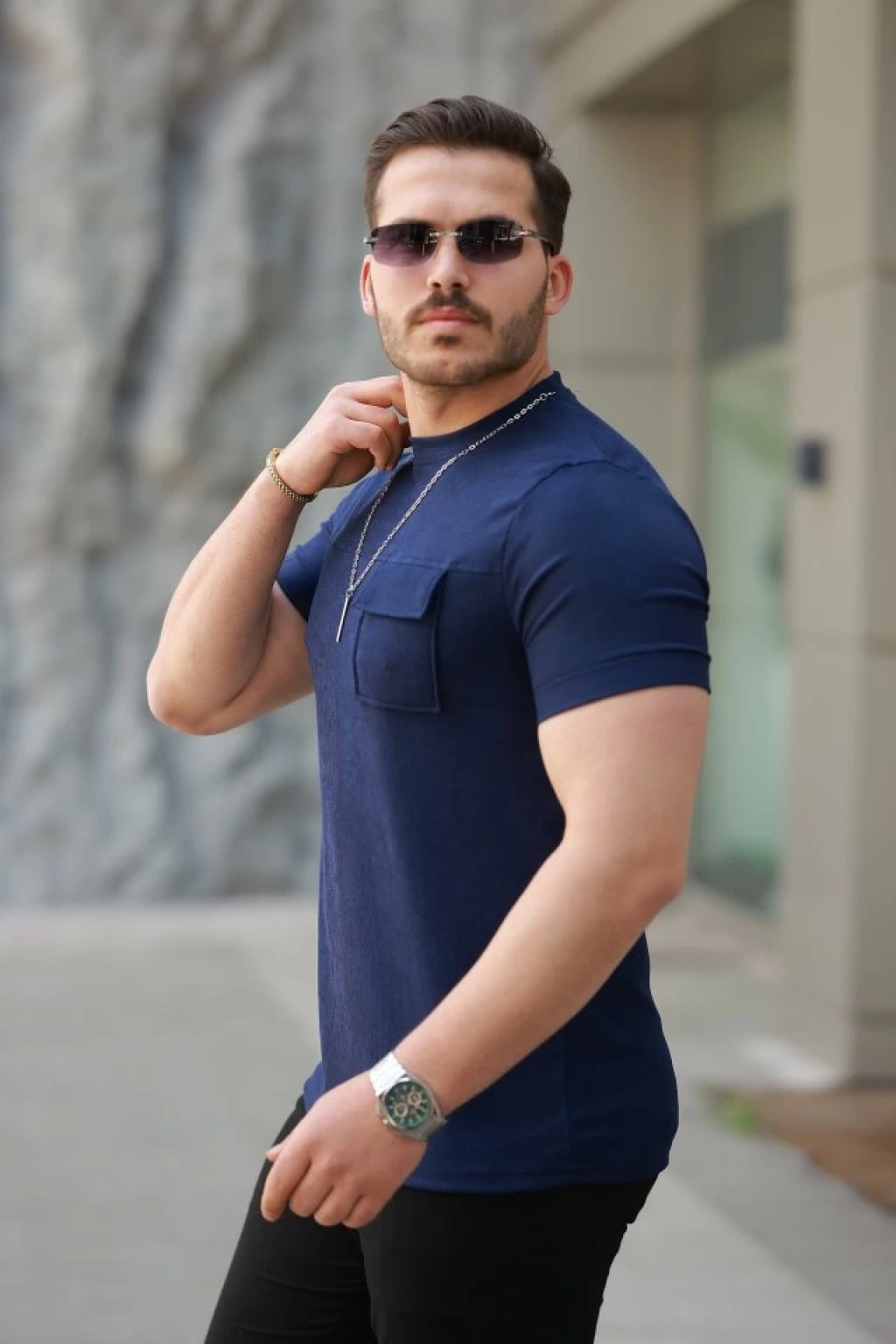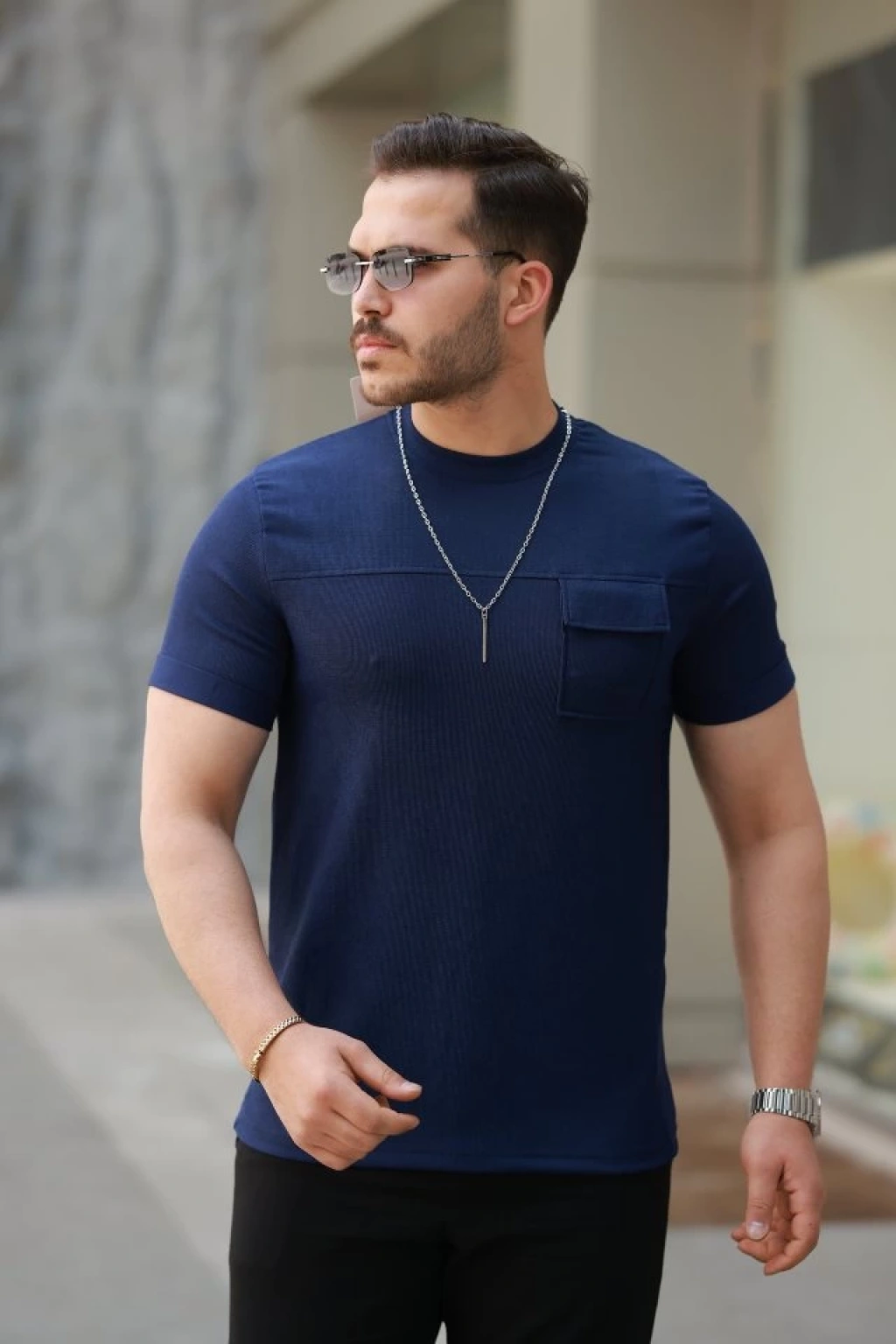 Erkek Cepli Kolyeli Kısa Kollu örme Kumaş Tişört