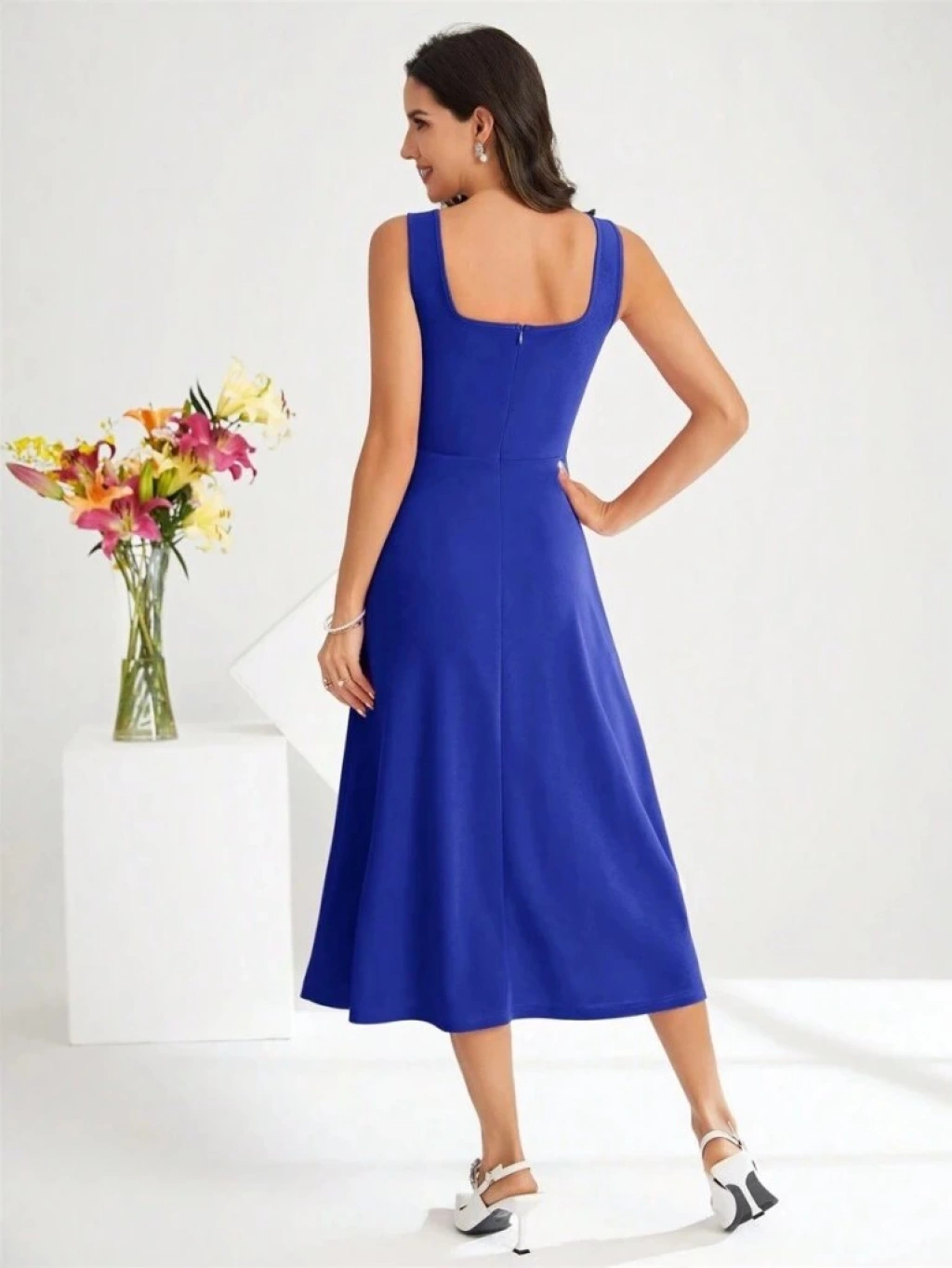 Kadın Askılı Kare Yakalı Midi Ithal Krep Elbise