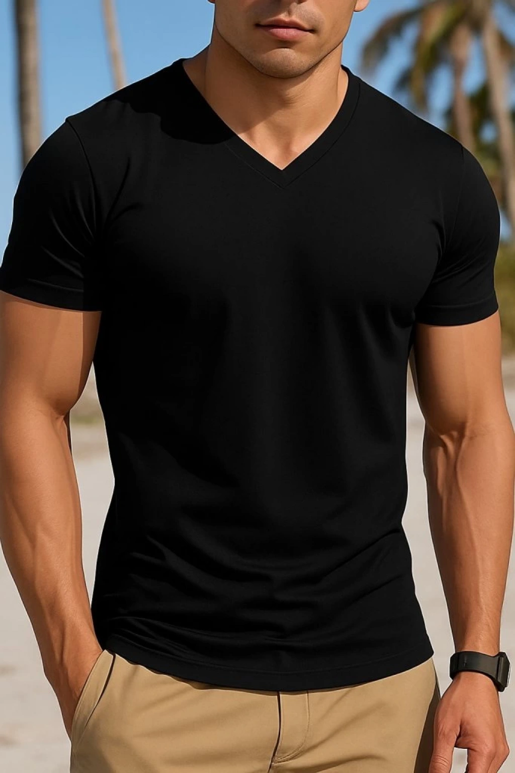 Erkek Kısa Kollu V Yakalı Viskon Bluz