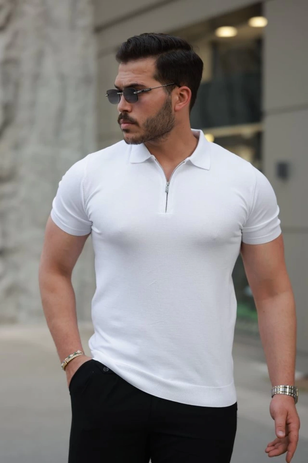 Erkek Fermuar Yakalı Kısa Kollu Tişört