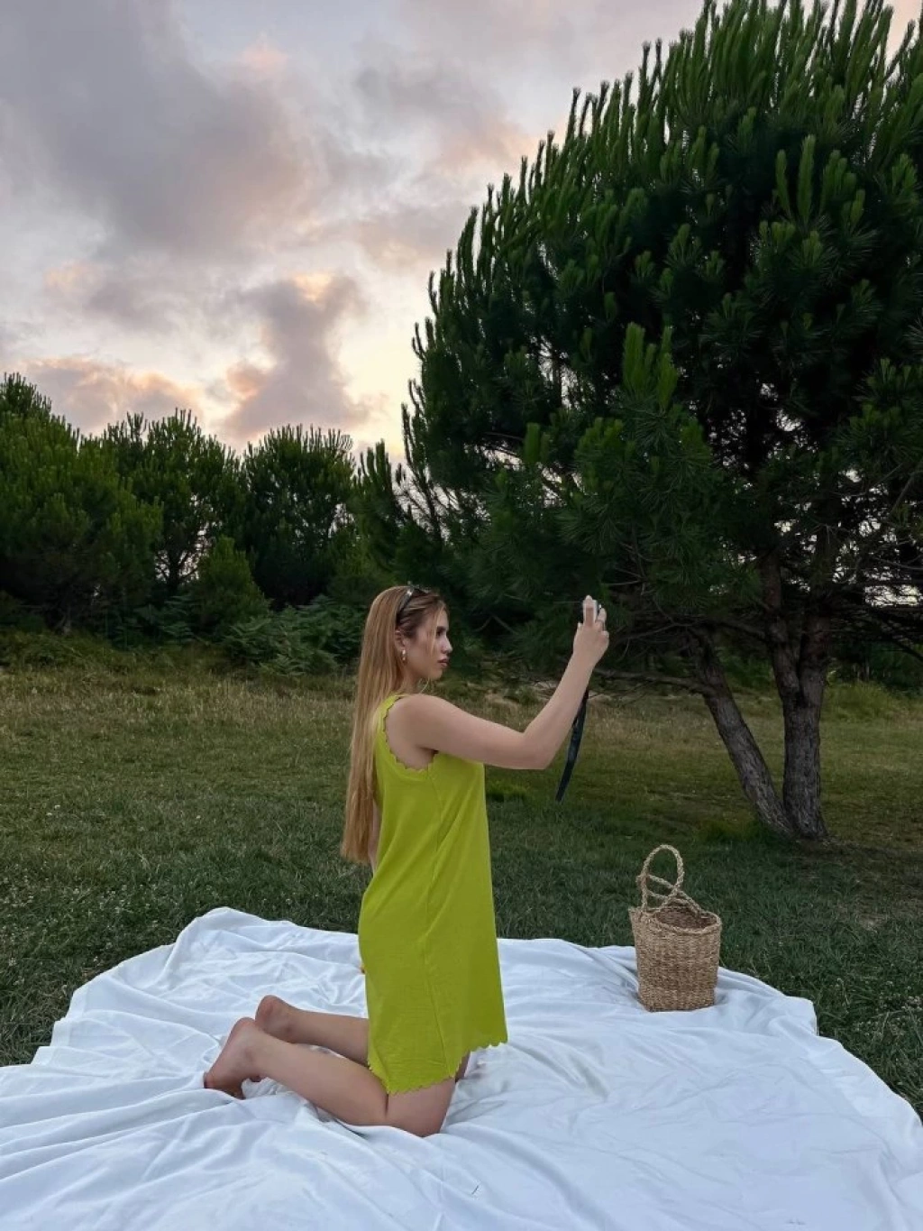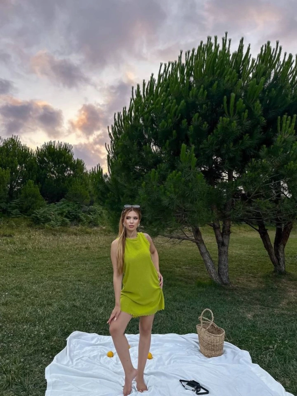 Kadın Keten Kumaş Kolsuz Mini Boy Elbise