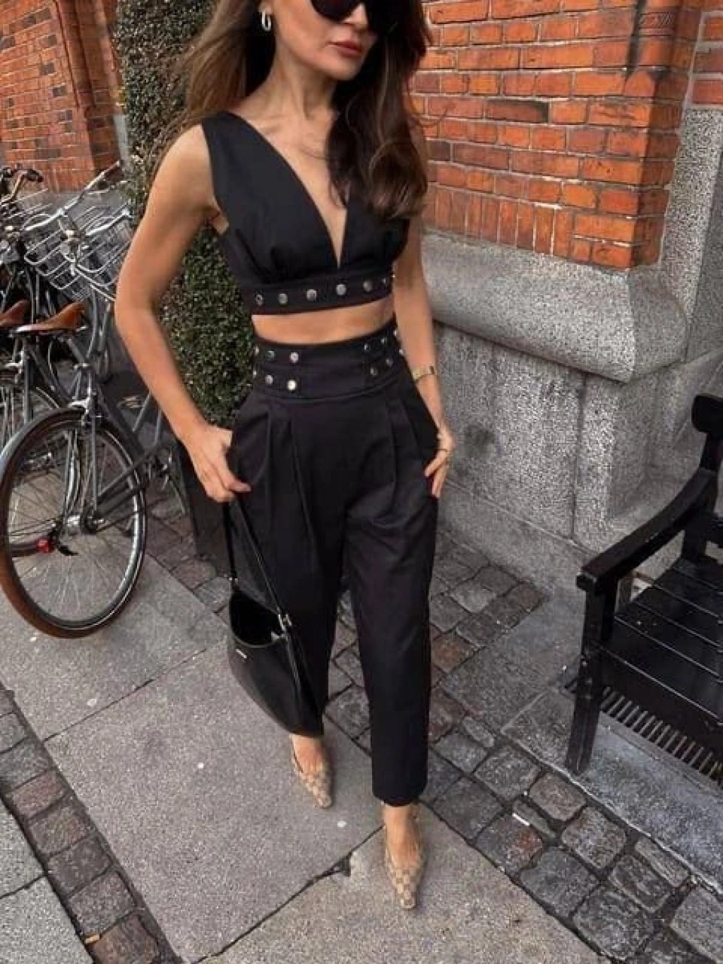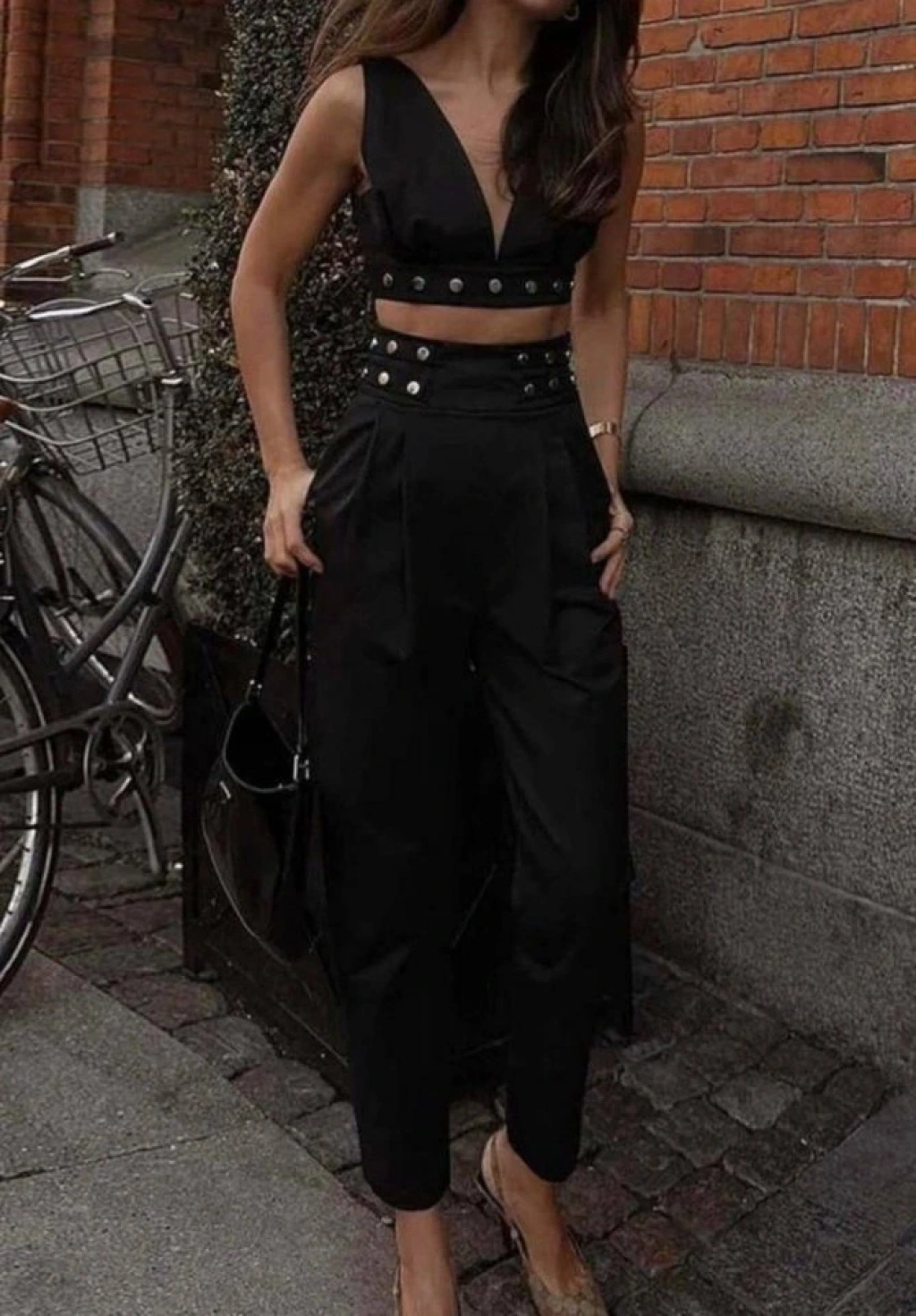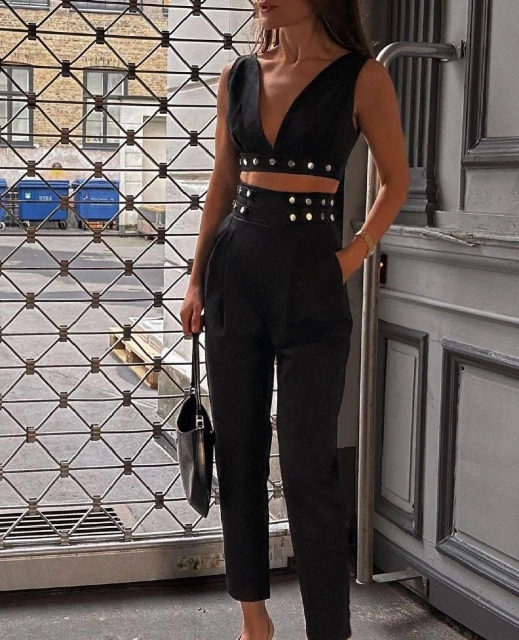 Kadın Double Krep Kumaş Düğme Aksesuar Detaylı Takım