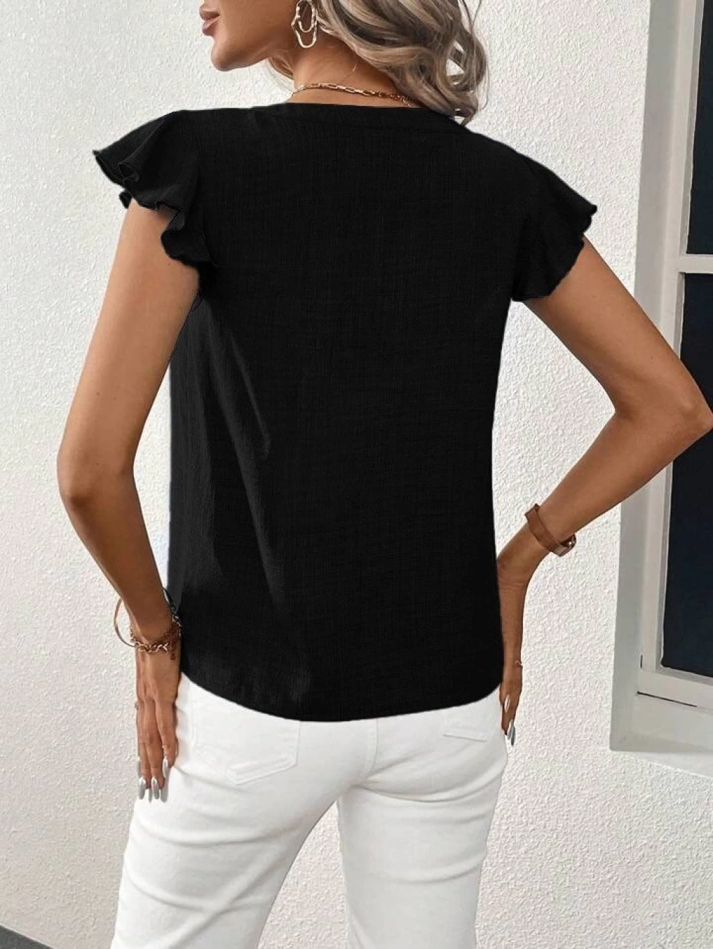 Kadın Kısa Kelebek Kollu V Yakalı Bluz