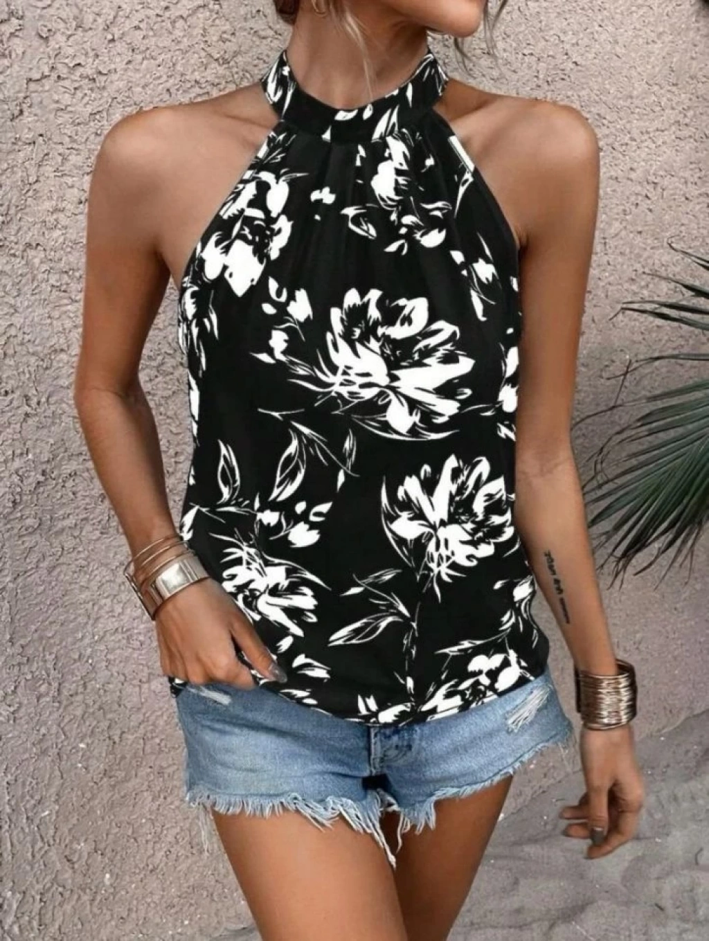Kadın çiçek Desen Mikro Kumaş Bluz