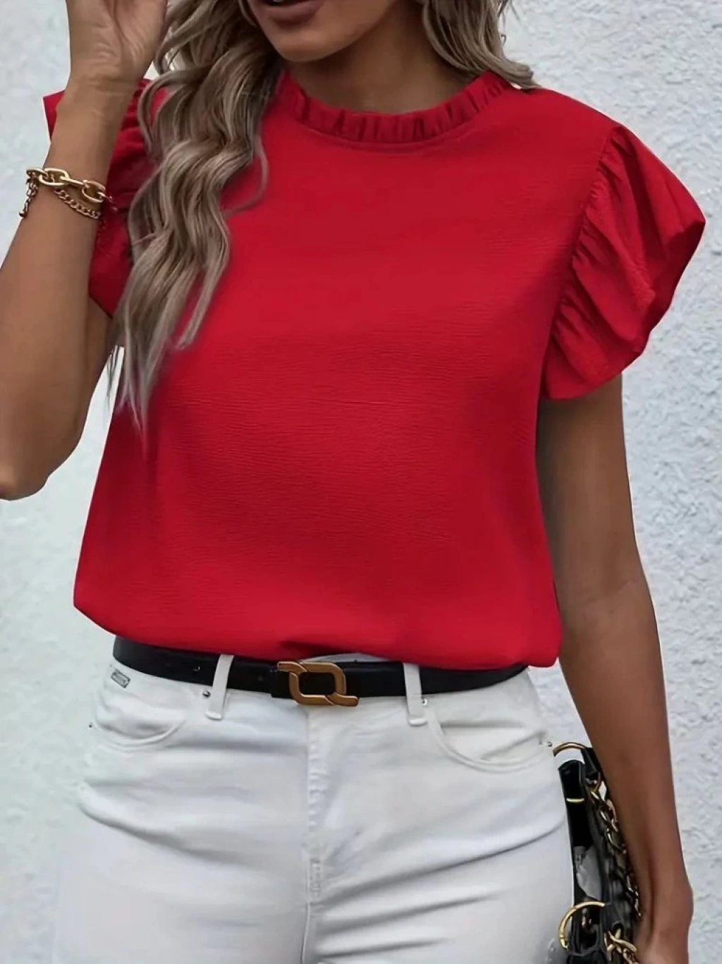 Kadın Kısa Kollu Fırfır Yakalı Bürümcük Bluz