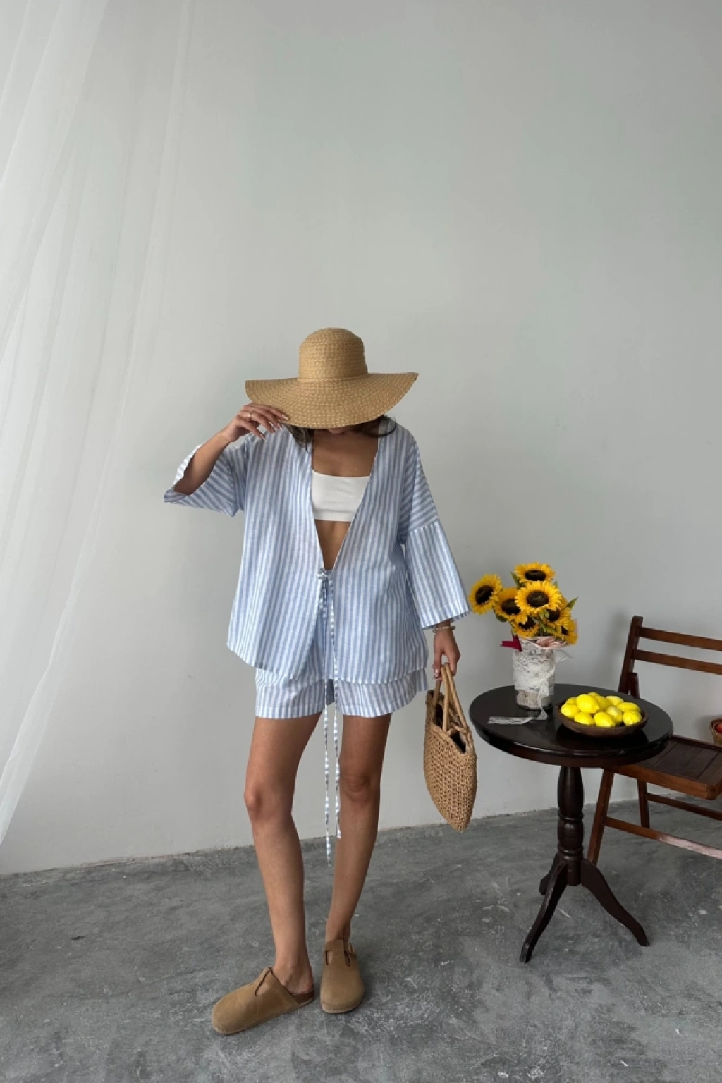 ÇİZGİLİ TUNİK -ŞORT TAKIM - Mavi