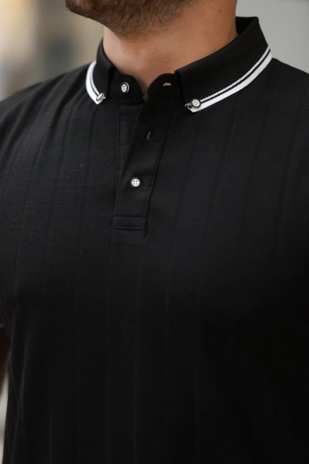 Erkek Düğme Yakalı Jakar Kumaş Kısa Kollu Tişört