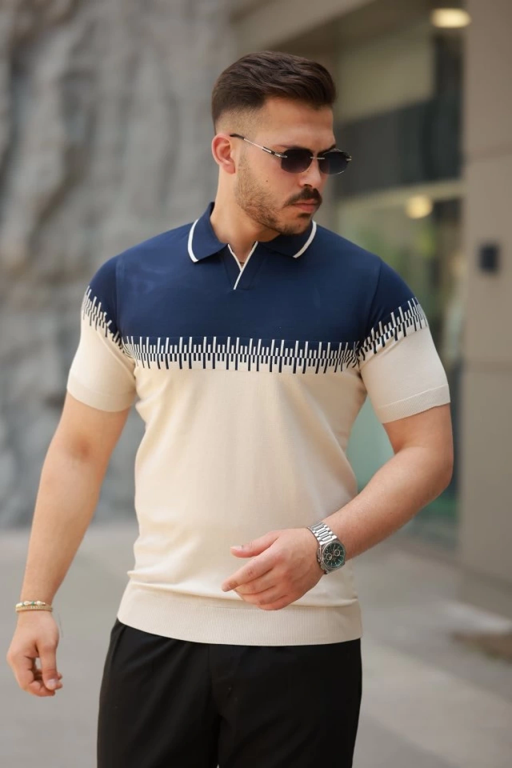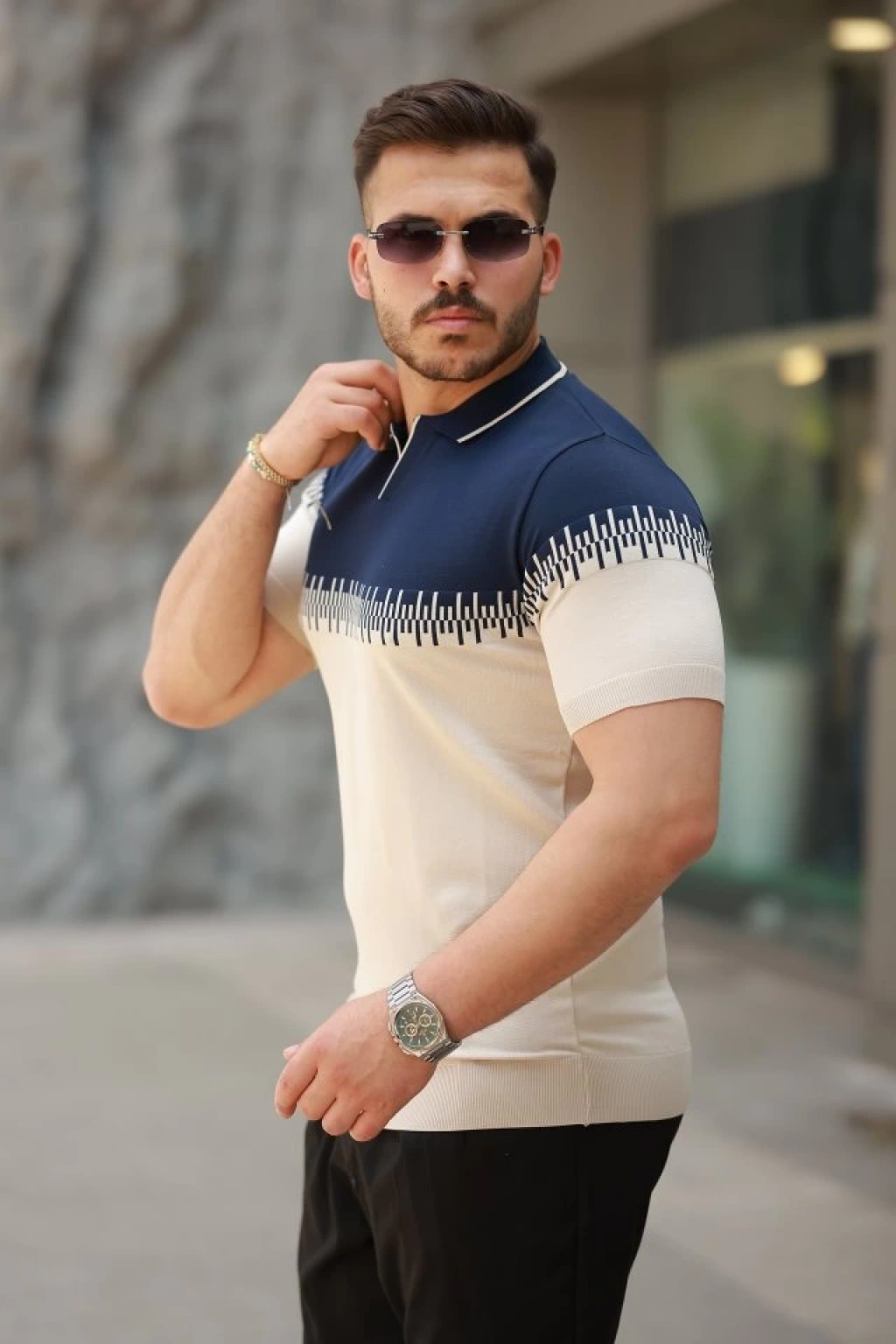 Erkek Hemşire Yaka çift Renk Kısa Kollu Tişört