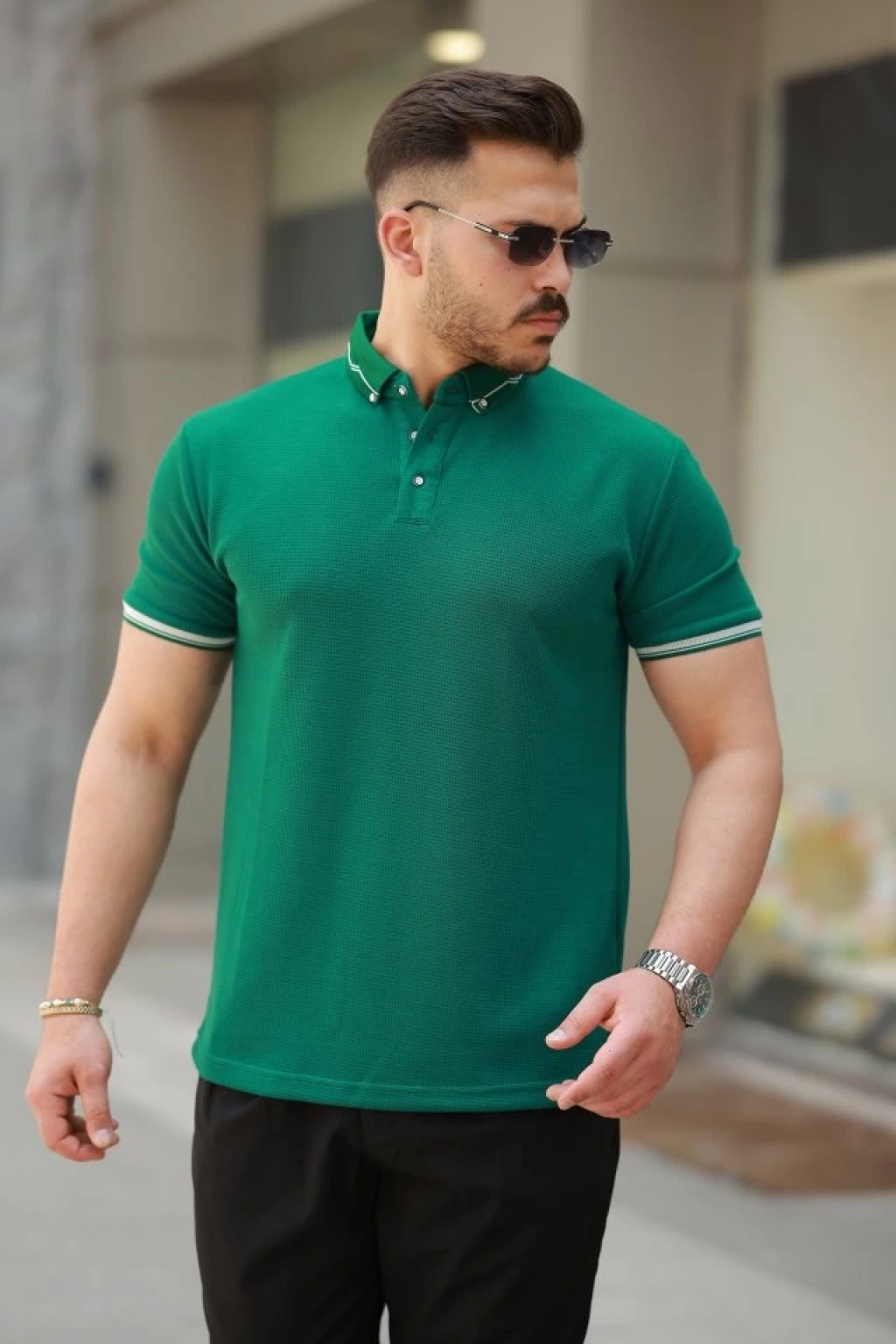 Erkek Düğmeli Yaka Waffle Kumaş Kısa Kollu Tişört
