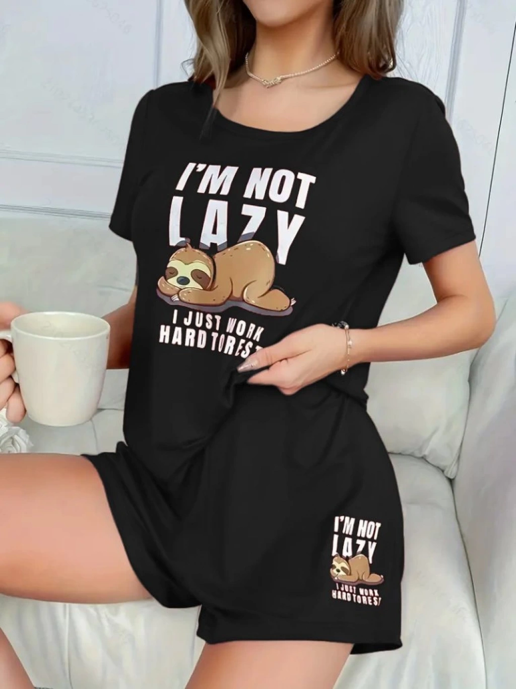 Kadın Kısa Kollu Bisiklet Yaka Baskılı Viskon Bluz Ve şort Ikili Takım