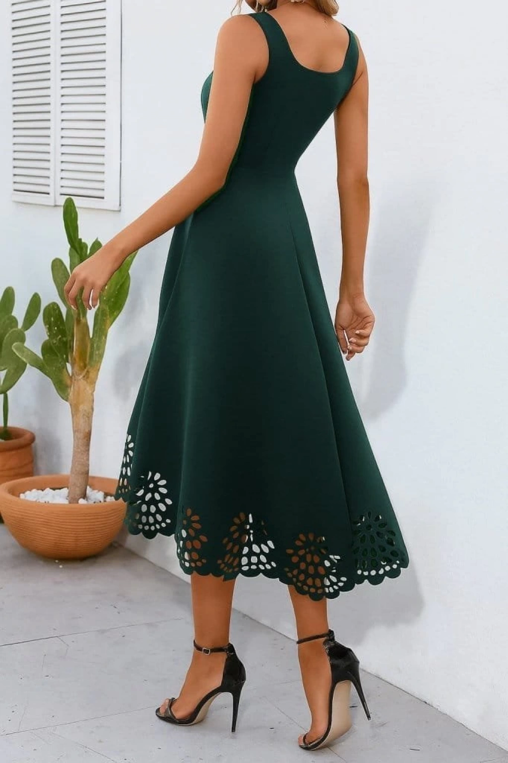 Kadın Askılı Geometrik Yaka çiçek Lazer Kesim Ithal Krep Elbise