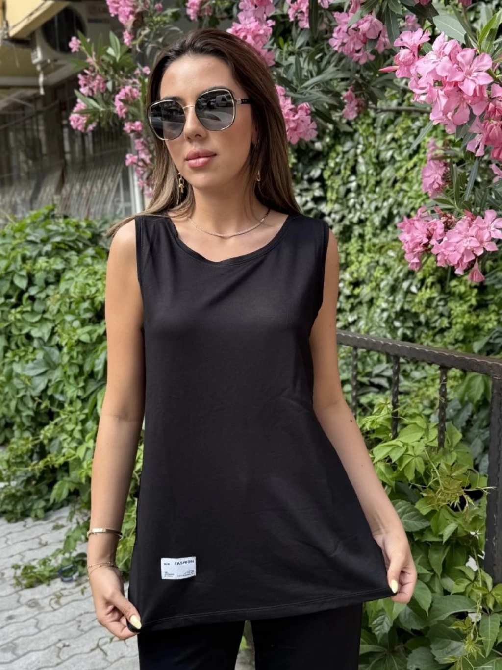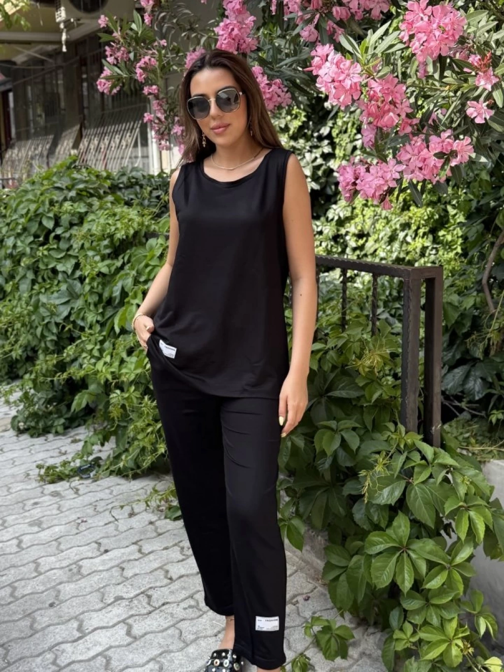Kadın Askılı Yuvarlak Yaka Viskon Iki Iplik Bluz Ve Eşofman Altı Ikili Takım