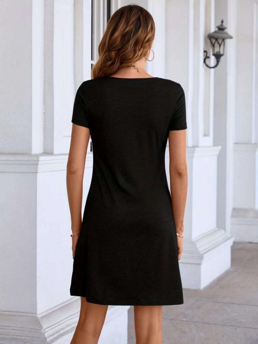 Kadın Kısa Kollu Yaka Detay Viskon Elbise