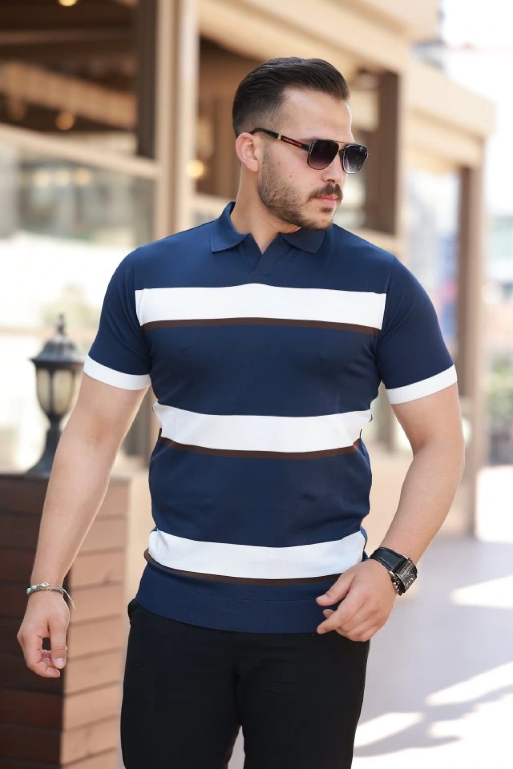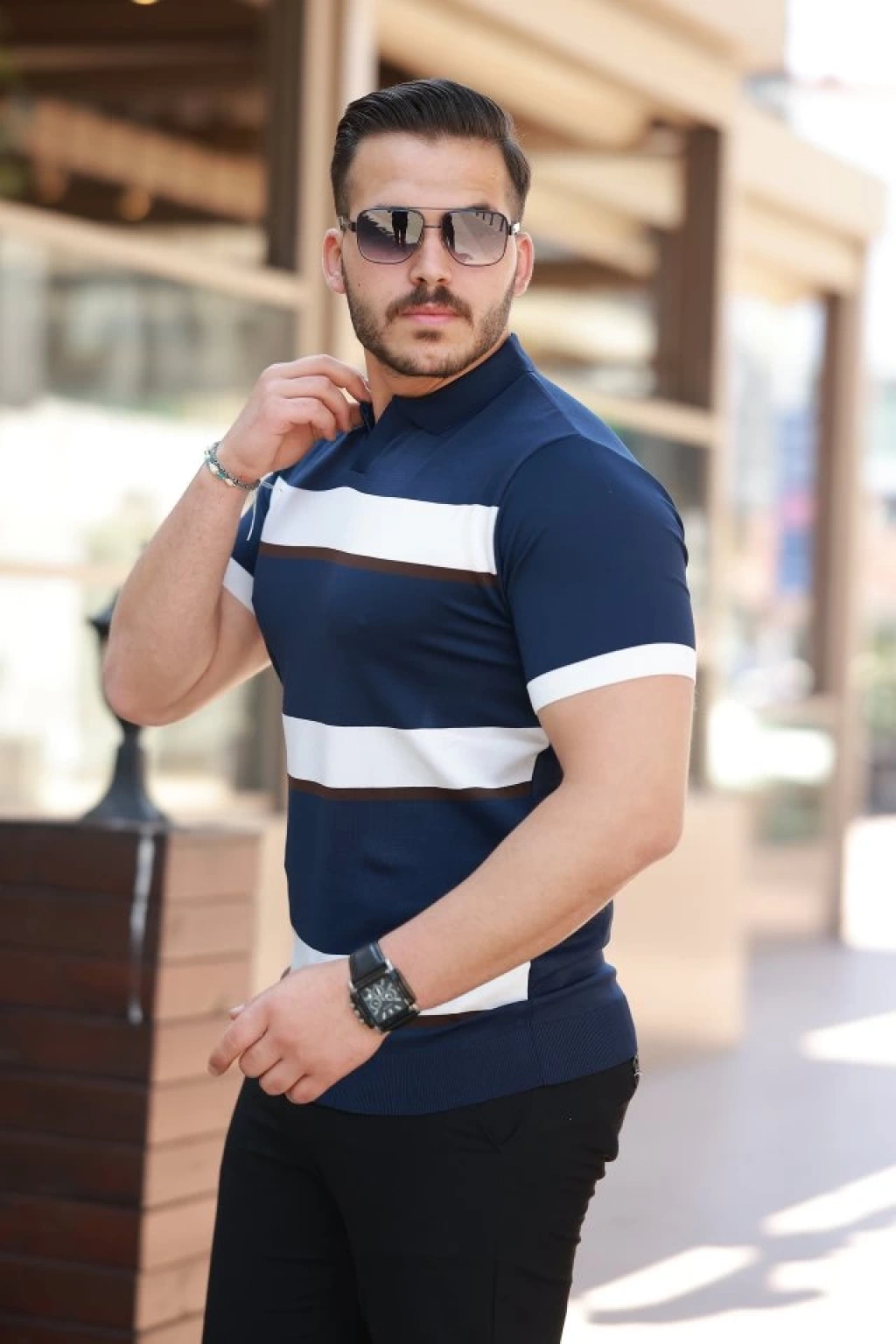 Erkek şerit Desenli Hemşire Yaka Kısa Kollu Tişört