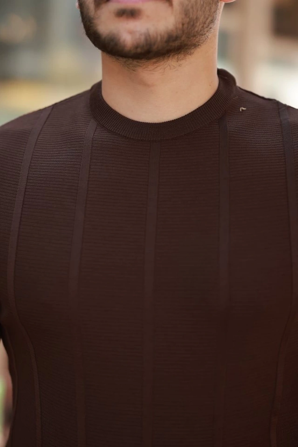 Erkek Desenli çizgi Kabartmalı Kısa Kollu Tişört