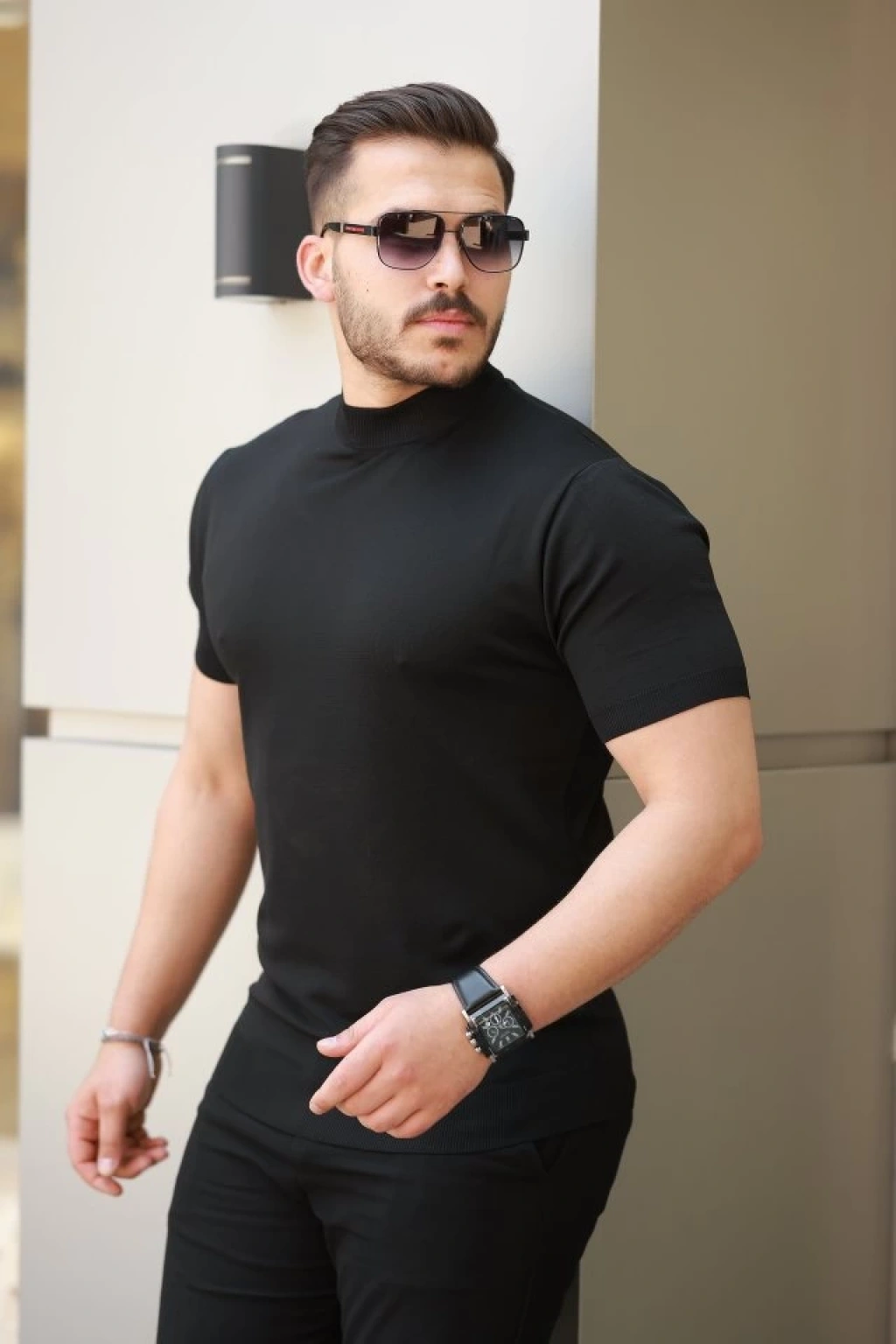 Erkek Yarım Balıkçı Yaka Kısa Kollu Tişört