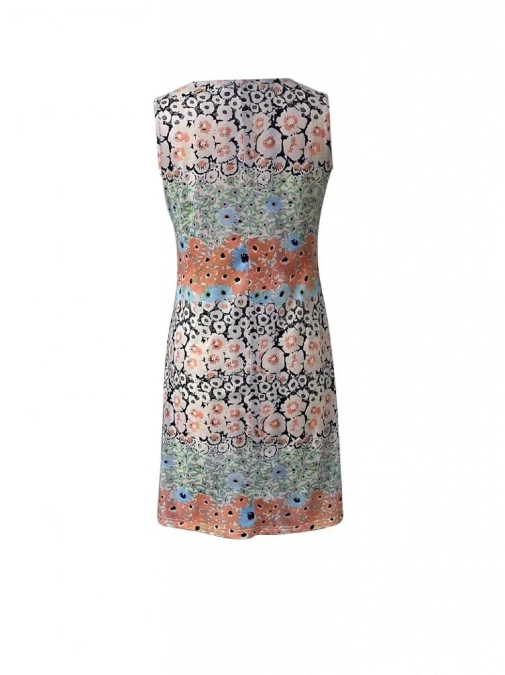 Kadın Kolsuz V Yaka çiçek Desenli Süprem Elbise