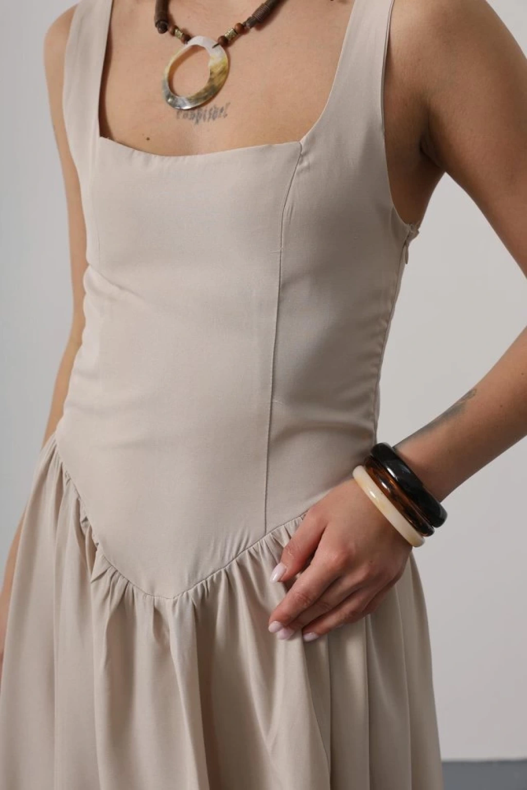Askılı Uzun Elbise - Taş