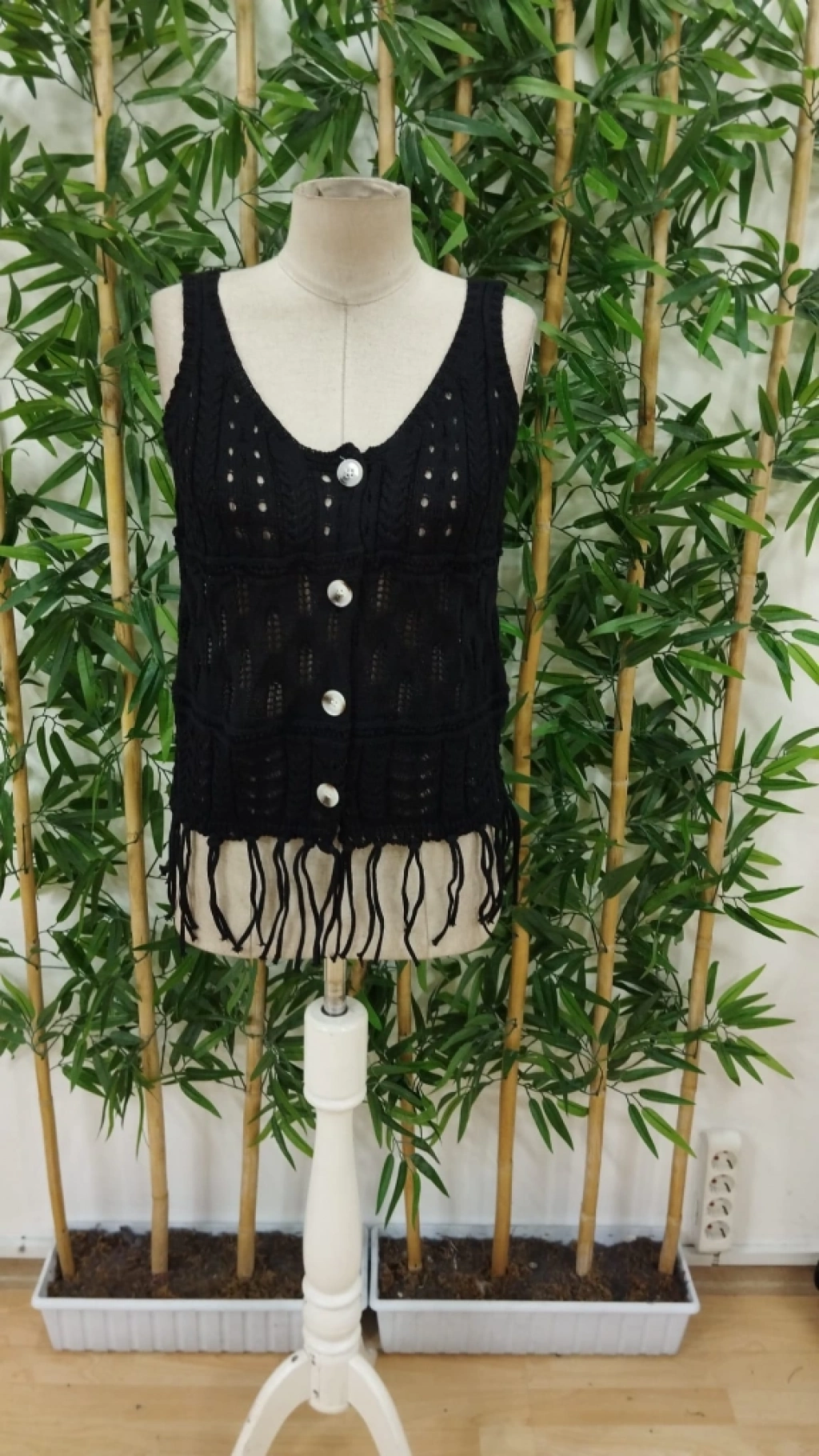 Kadın Askılı Yuvarlak Yaka önden Düğmelipüsküllü Triko Bluz