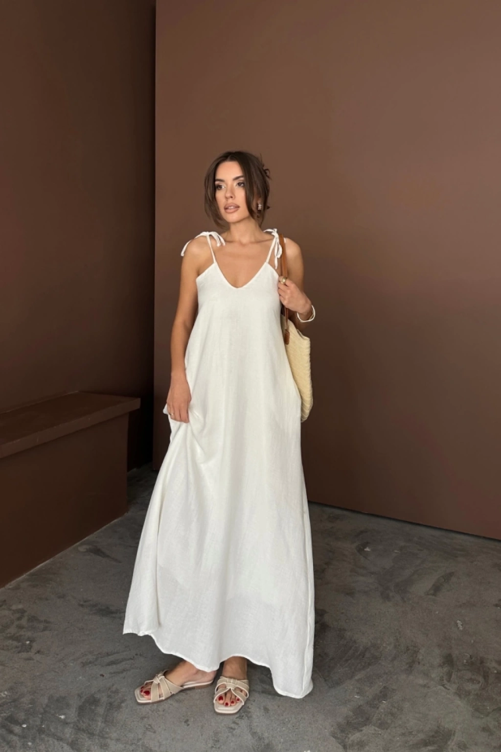 ASKILI UZUN SALAŞ MÜSLİN ELBİSE - Beyaz
