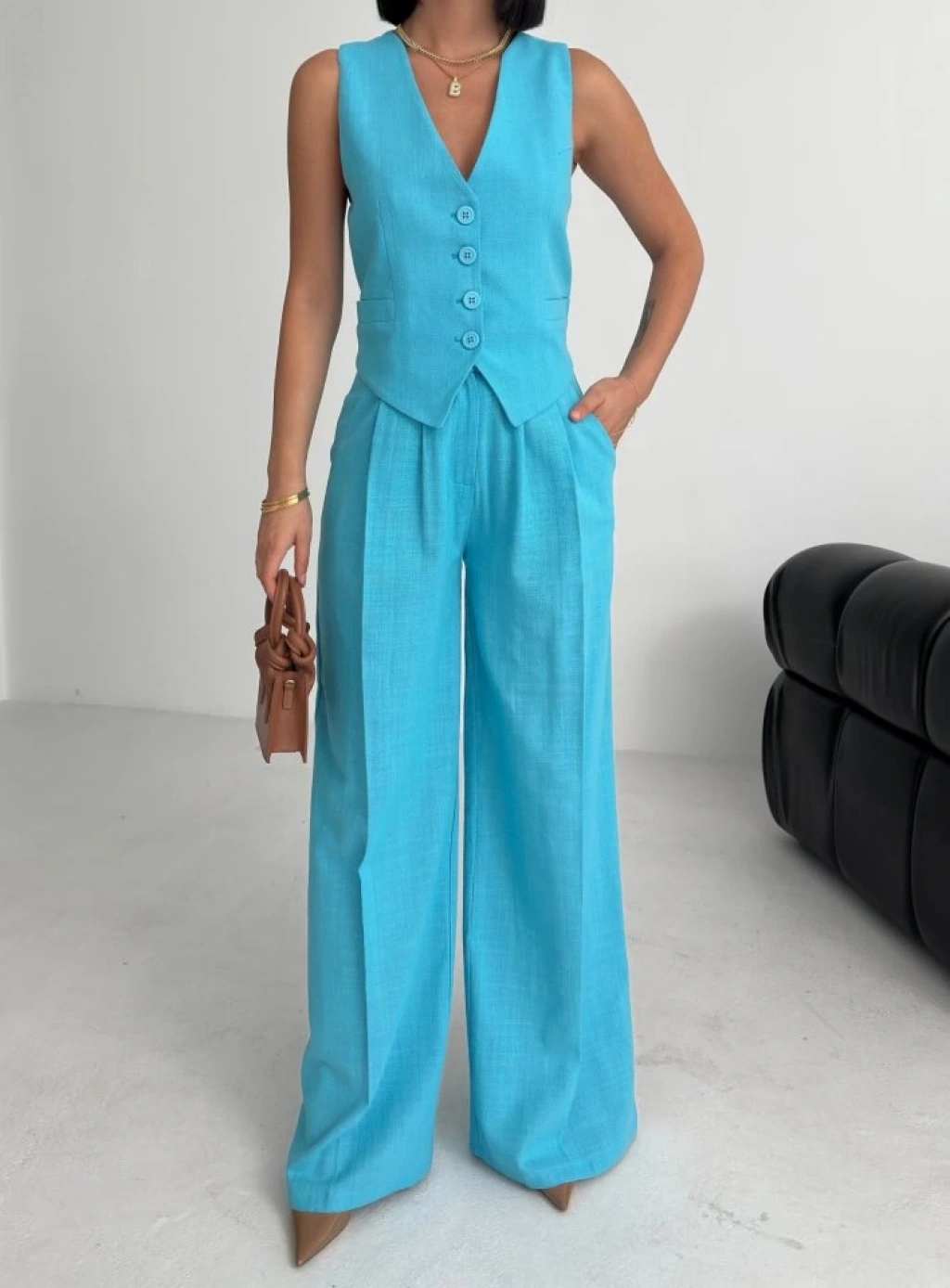 Keten Sirti Çapraz Geçi̇şli̇ Cepken Pantolon Takim