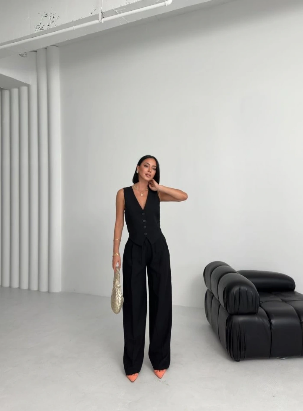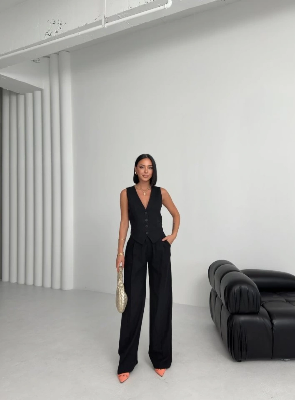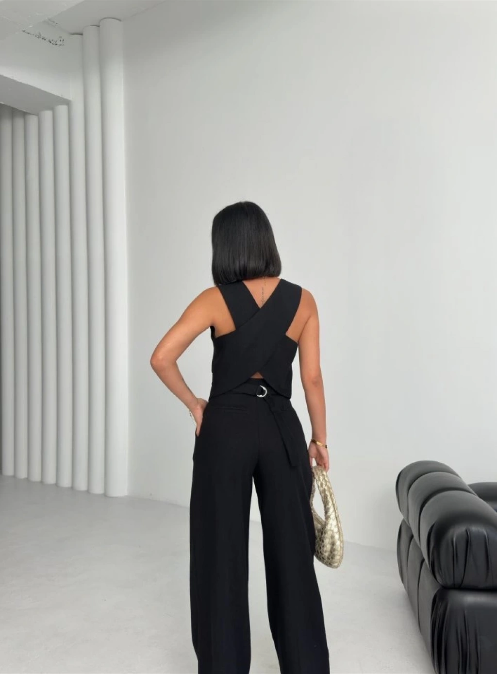 Keten Sirti Çapraz Geçi̇şli̇ Cepken Pantolon Takim