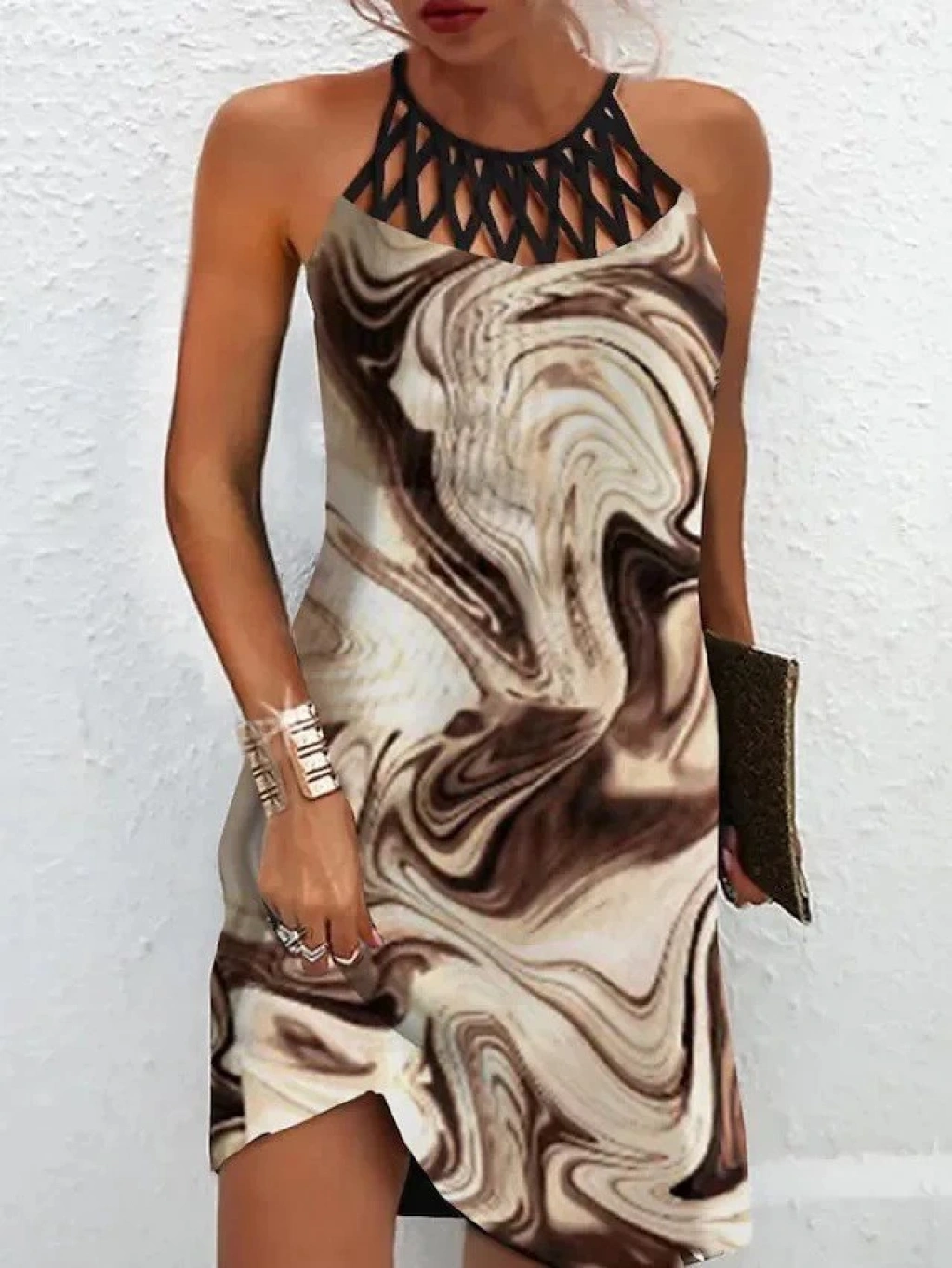 Kadın Sıfır Kol Soğuk Omuz Yaka Baskılı Süprem Elbise