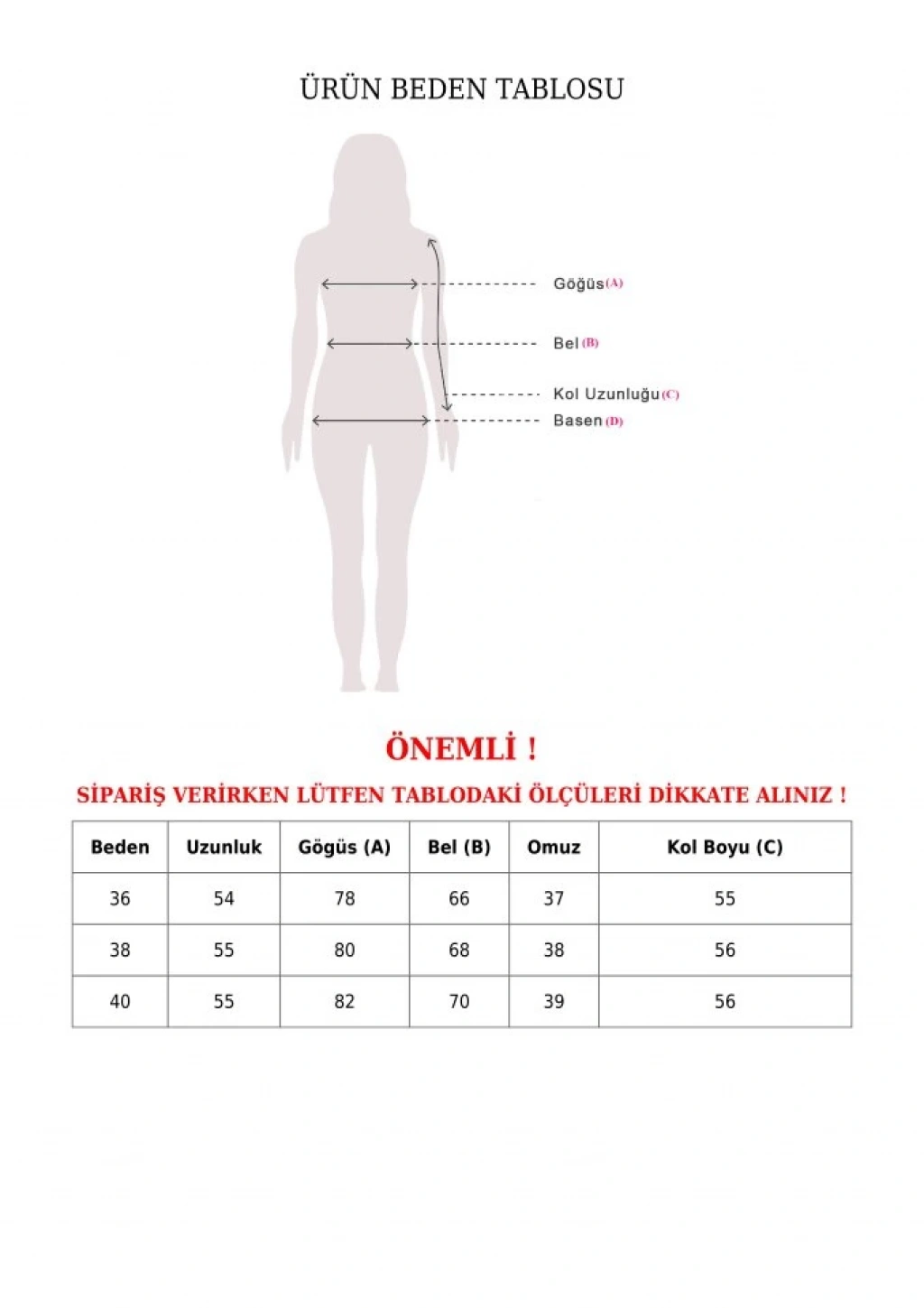 Modelin Ölçüleri: Boy:165, Kg:55, Göğüs:90, Bel:72, Kalça: 100