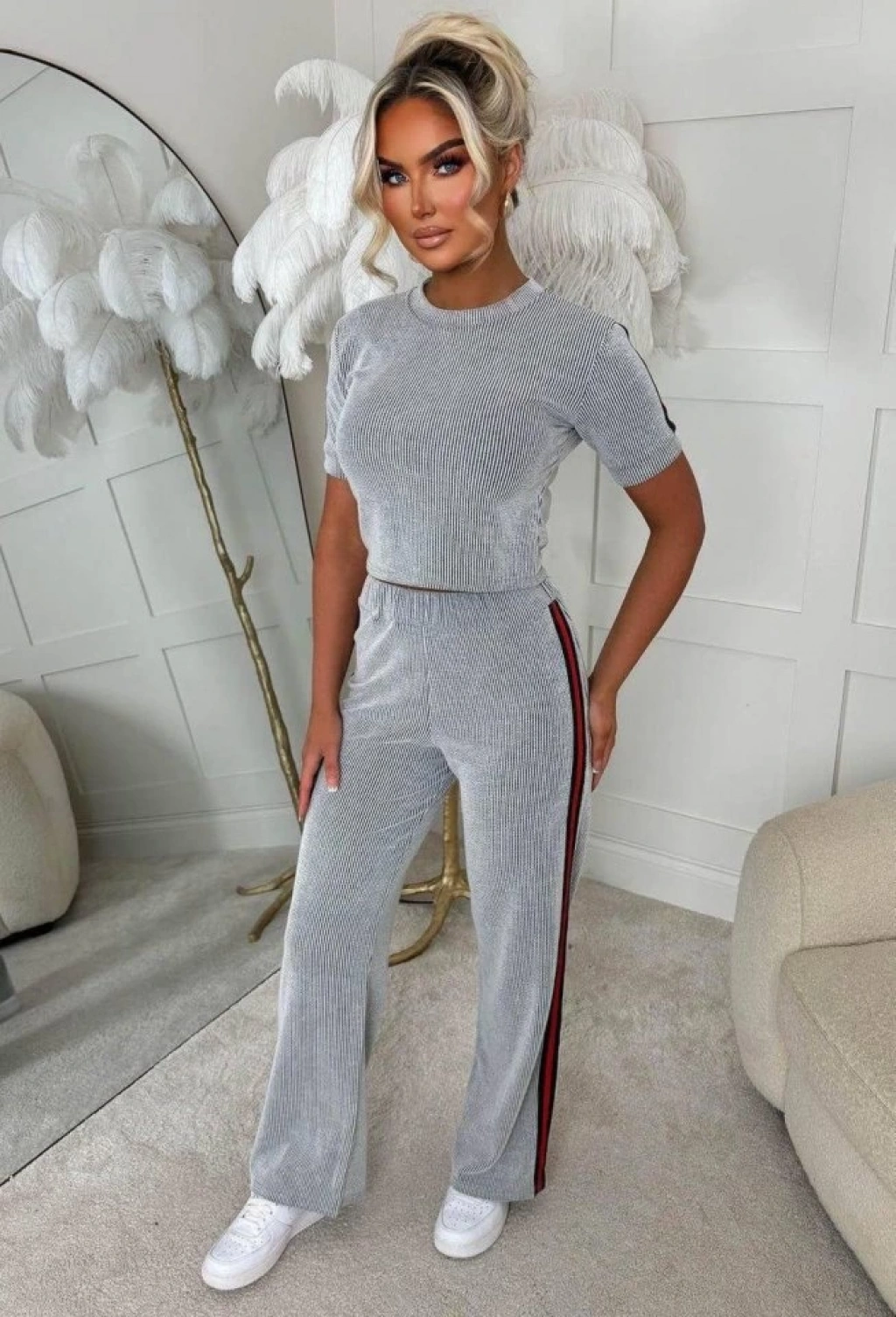 Kadın Bisiklet Yaka Yanı şerit Detay Bluz Ve Pantolon Ikili Takım
