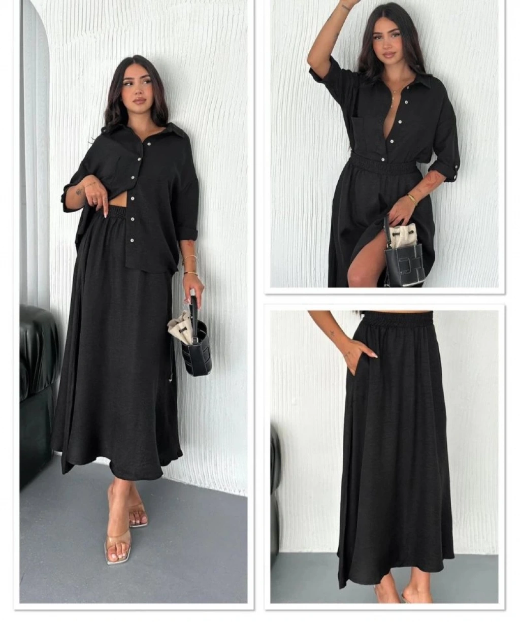 Kadın Keten Kumaş Gömlek Ve Etek Ikili Takim