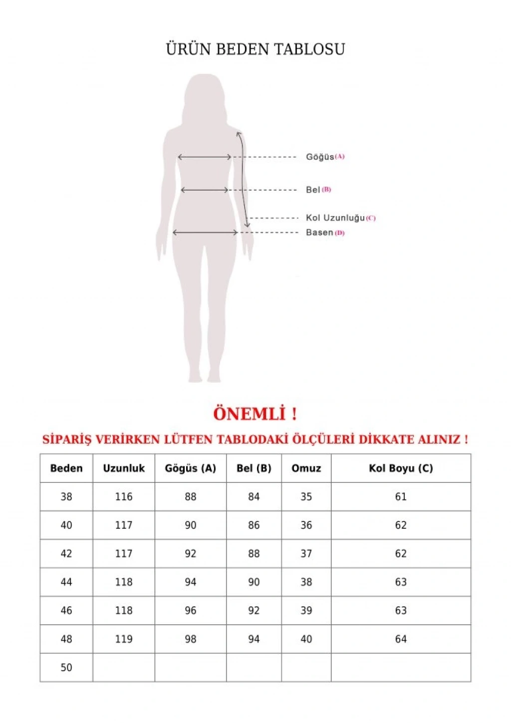 Modelin Ölçüleri: Boy:165, Kg:55, Göğüs:90, Bel:72, Kalça: 100